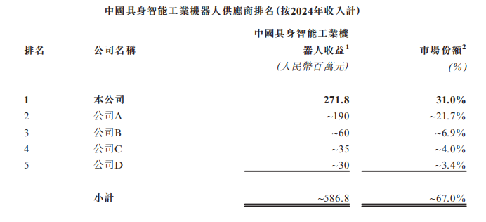 近日,常州微亿智造科技股份有限公司向港交所递交招股书。这家公司成立于2018年8月,按2024年收入计,已是中国最大的工业具身智能机器人(EIIR)供应商,市场份额约31.0%。