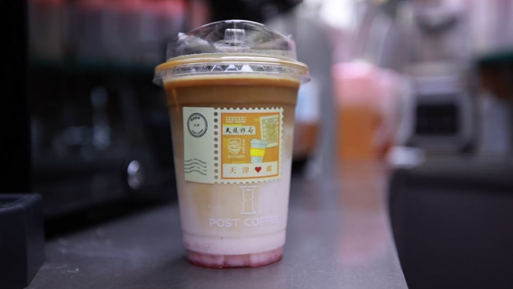 邮政咖啡,更是点燃了年轻人的打卡热情。人们买完咖啡,会特意把杯贴揭下来,随着明信片一起寄走,传递春天的气息。