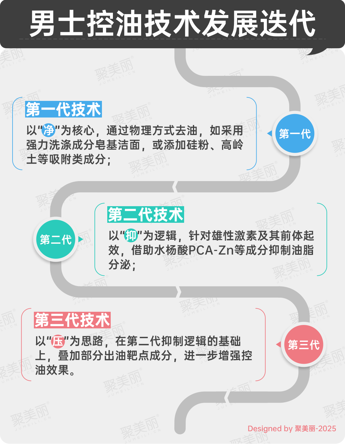 回顾男士护肤控油技术的发展历程,行业已历经三次迭代: