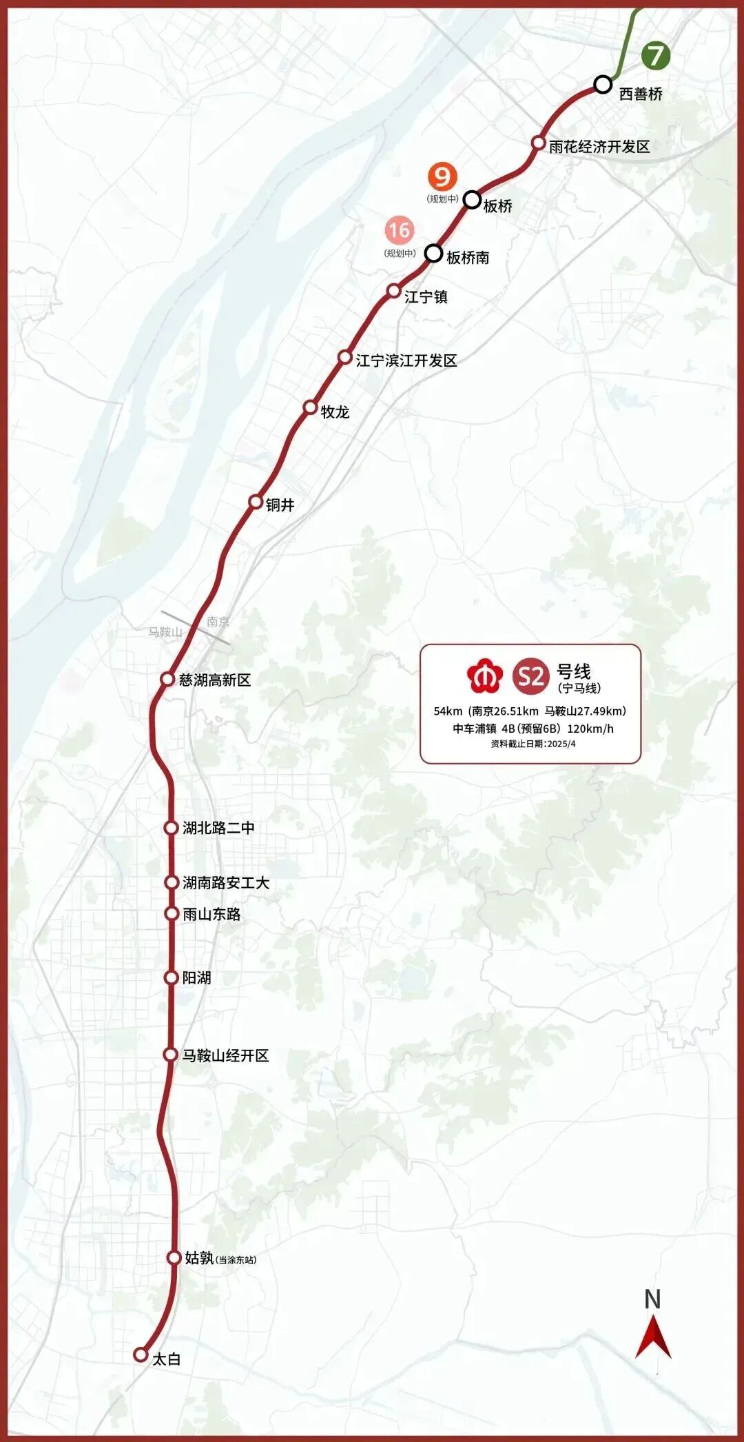 宁马城际全长54.23千米,其中南京段26.51千米,于2021年12月开工;马鞍山段27.49千米,于2021年3月正式开工。