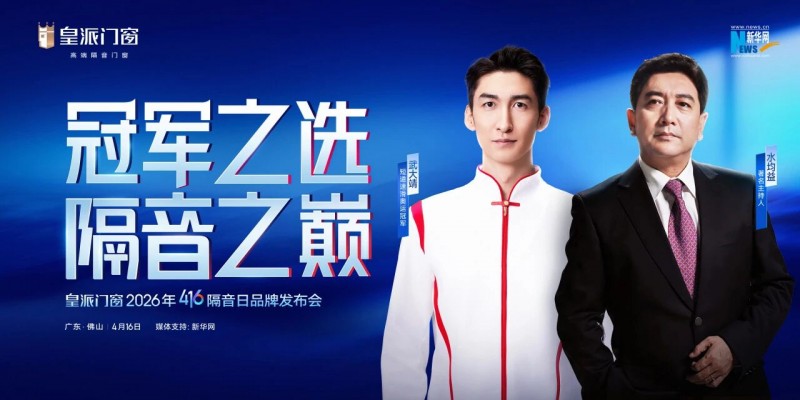 作为中国高端隔音门窗的领军品牌,皇派门窗以4月16日世界噪音日为锚点,以连续十一年发起“416隔音日”品牌IP,从呼吁关注噪音危害,到一次次刷新高端隔音门窗的技术边界,成为自带行业风向标意义的“隔音力量”。2026年4月16日,皇派门窗以“冠军之选隔音之巅”为主题,重磅启幕416隔音日品牌发布会。本次活动获新华网特别支持,著名主持人水均益、短道速滑奥运冠军武大靖亲临助阵,震撼首发皇派门窗与清华大学联合研发高隔音新品,并携手一众行业大咖专家、全球头部供应链品牌,共同发布全新隔音门窗的品质新标准。当天,水均益、武大靖还将与皇派门窗董事长朱福庆共同空降探厂直播间,沉浸式鉴证皇派门窗的硬核实力和极致匠心。