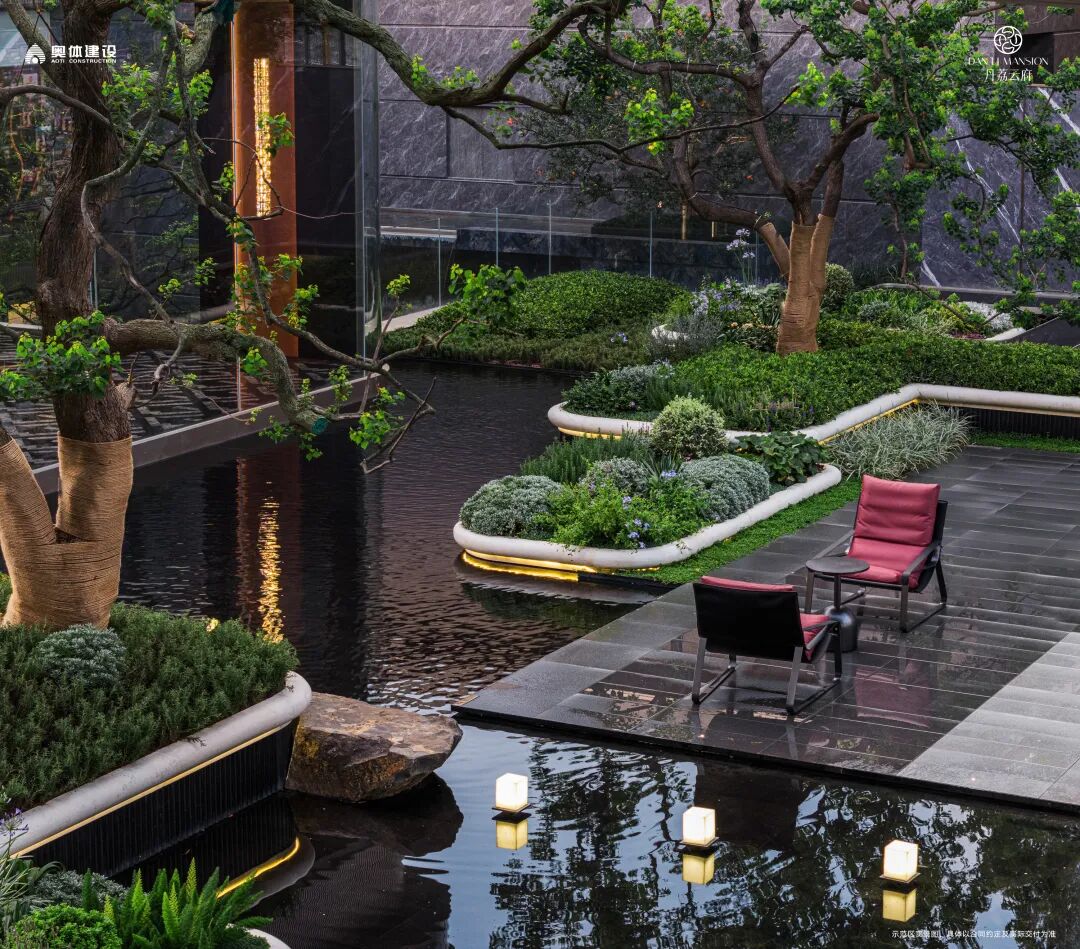 丹荔云府的景观设计由 QIDI 栖地设计集团首席设计师聂柯亲自操刀,打造出一座沉浸式的归家园林。