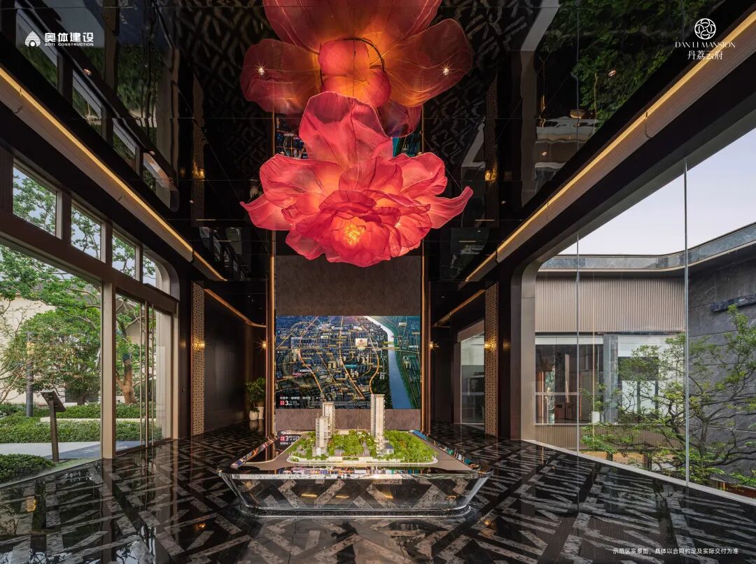 项目会所由香港著名 SCD 郑树芬设计事务所设计,整体风格以宝格丽酒店经典黑色为主调,并巧妙延伸“丹荔红”。