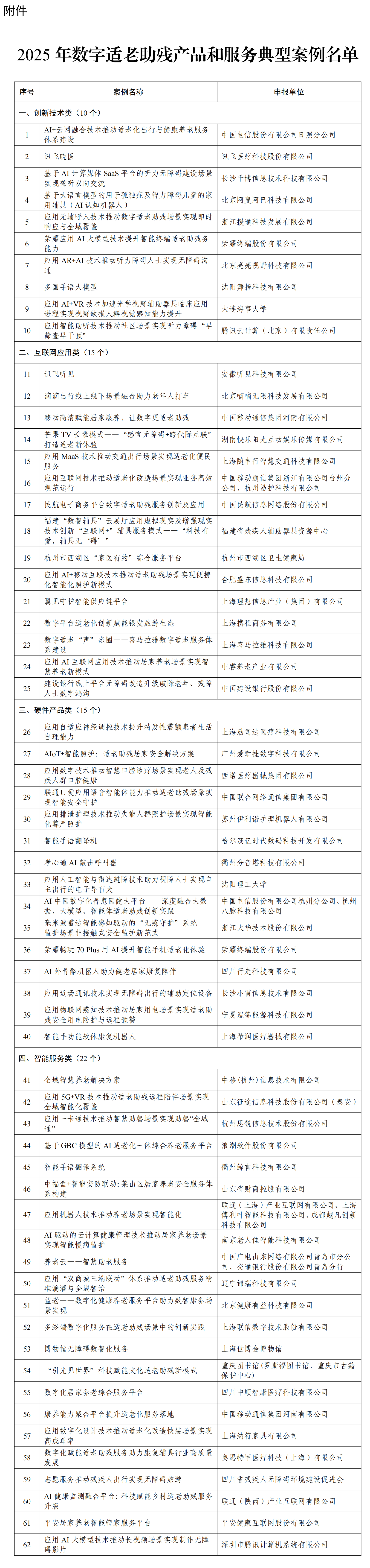 本次评选名单经自愿申报、省级推荐、专家评审和网上公示后确认,共分为创新技术、互联网应用、硬件产品、智能服务等四大类别——