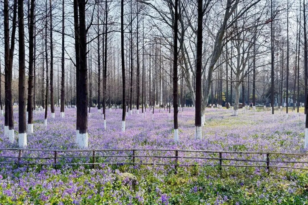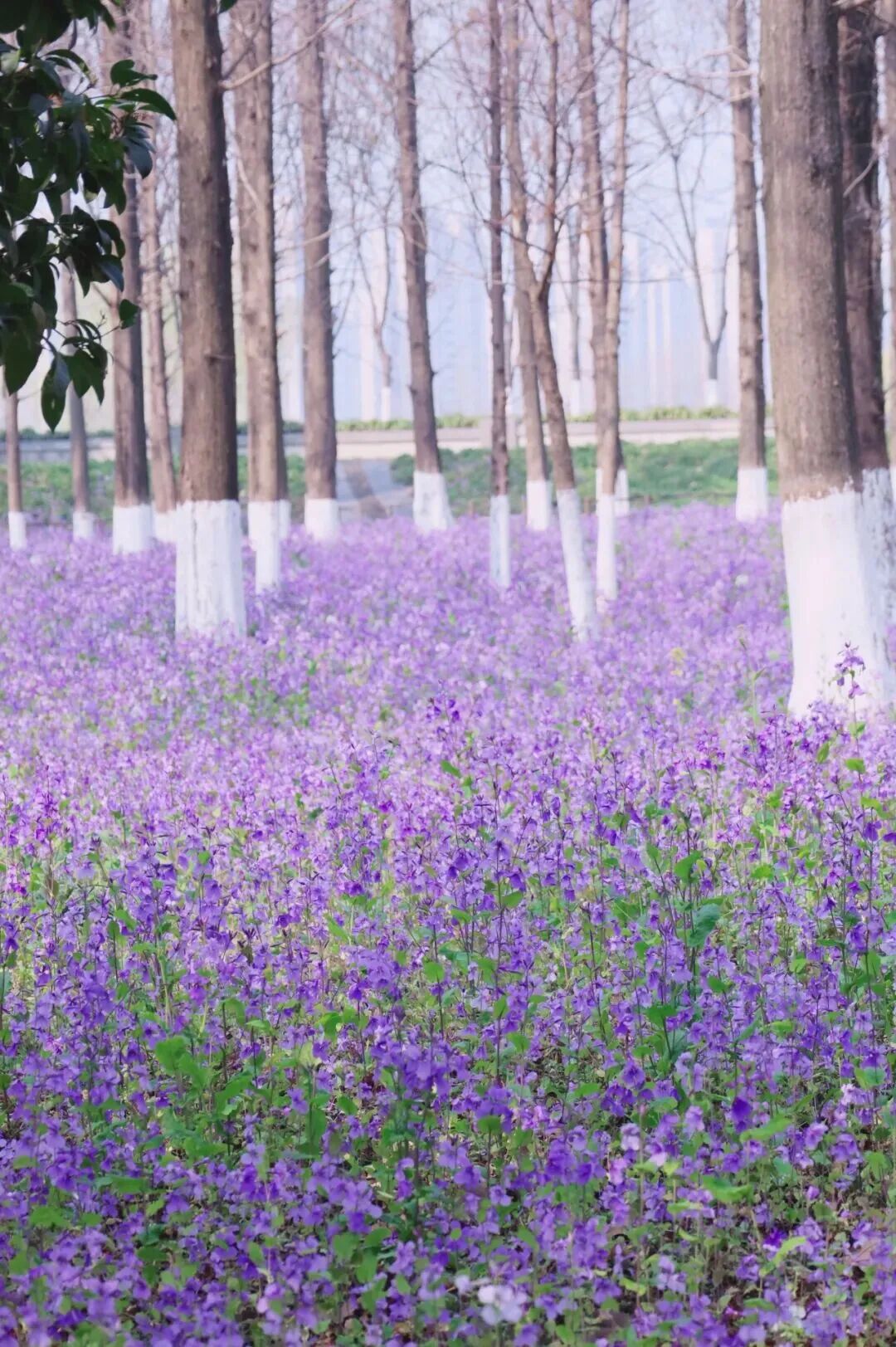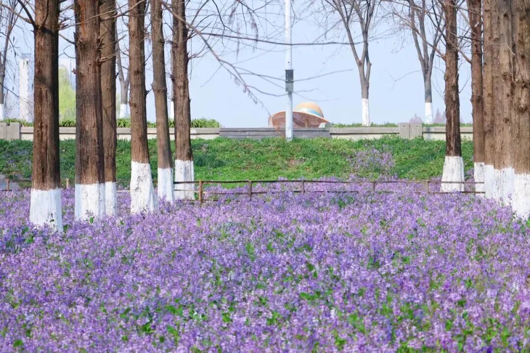 在绿博园左岸花海东侧,一片铺天盖地的紫色花海正悄然盛放,成为这个春天最静谧的浪漫。