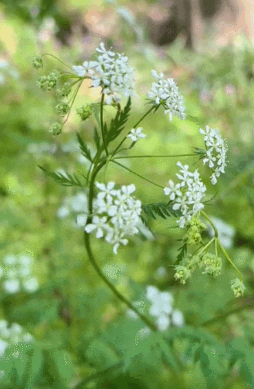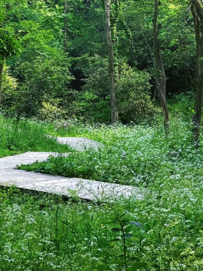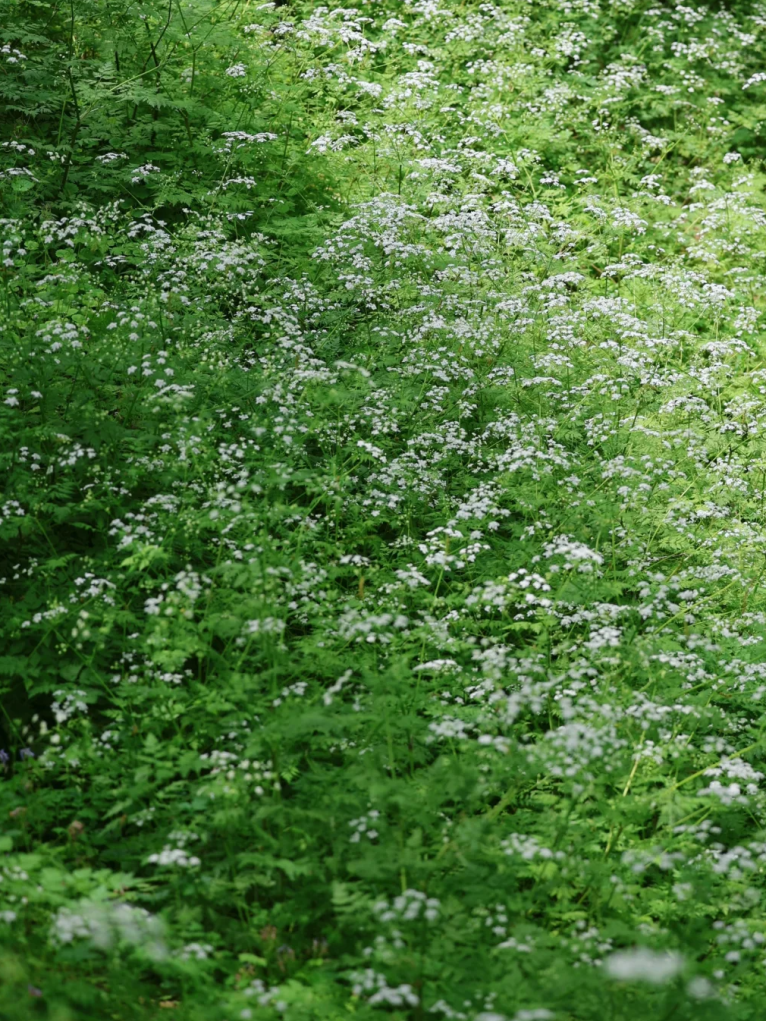 从“吴家大洼”牌坊进入,一路细碎蓬松的峨参花簇拥在一起,好似繁星洒落山林,温柔且浪漫。