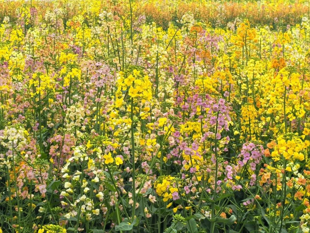 一大片油菜花开得正野,金黄得晃眼,像是打翻了的颜料桶。钻进花海里,随便一拍都是封神大片,没有天花板,只有触手可及的春天。