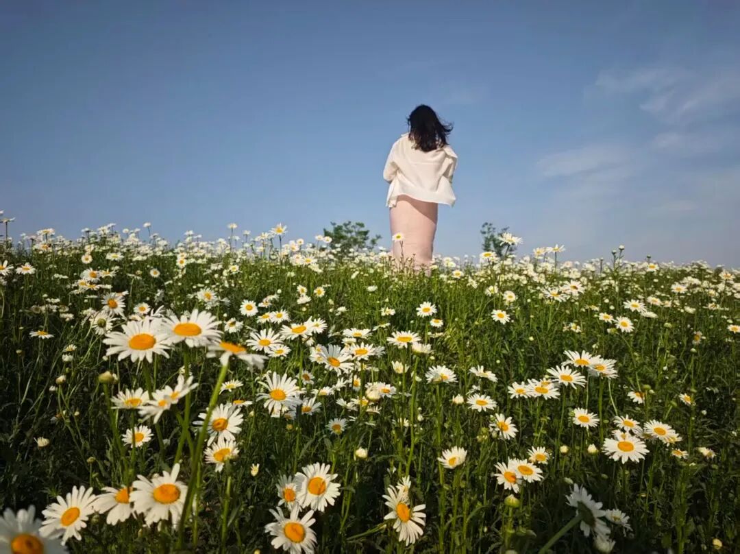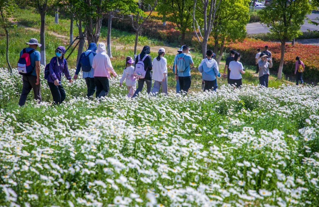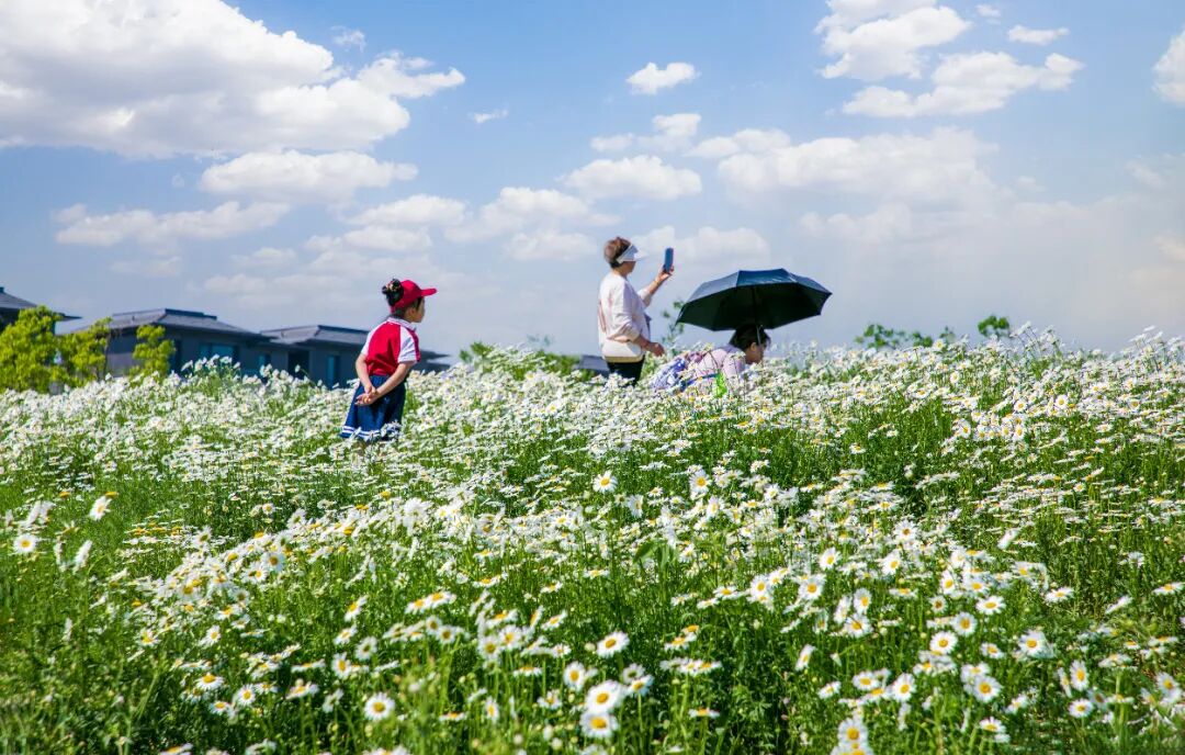 象山湖畔,阳光碎成星星,洒在绵延的小雏菊花海上。