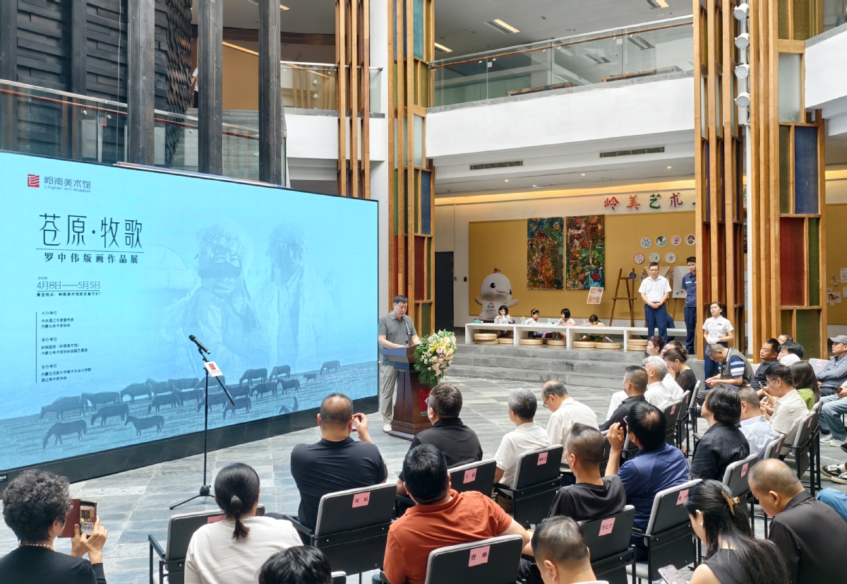 通辽地处科尔沁草原腹地,是享誉全国的哲里木版画发源地与传承核心区。通辽市委宣传部副部长、新闻出版版权局局长辛欣致辞中表示,罗中伟是从科尔沁草原走出的当代版画名家,其艺术之根深扎于草原,创作之魂赓续着中华文化北方谱系的雄浑基因。此次展览是科尔沁文化基因与岭南人文精神的精彩碰撞,是草原文化与大湾区文化的深度对话,以文化为纽带推动南北艺术交流互鉴。