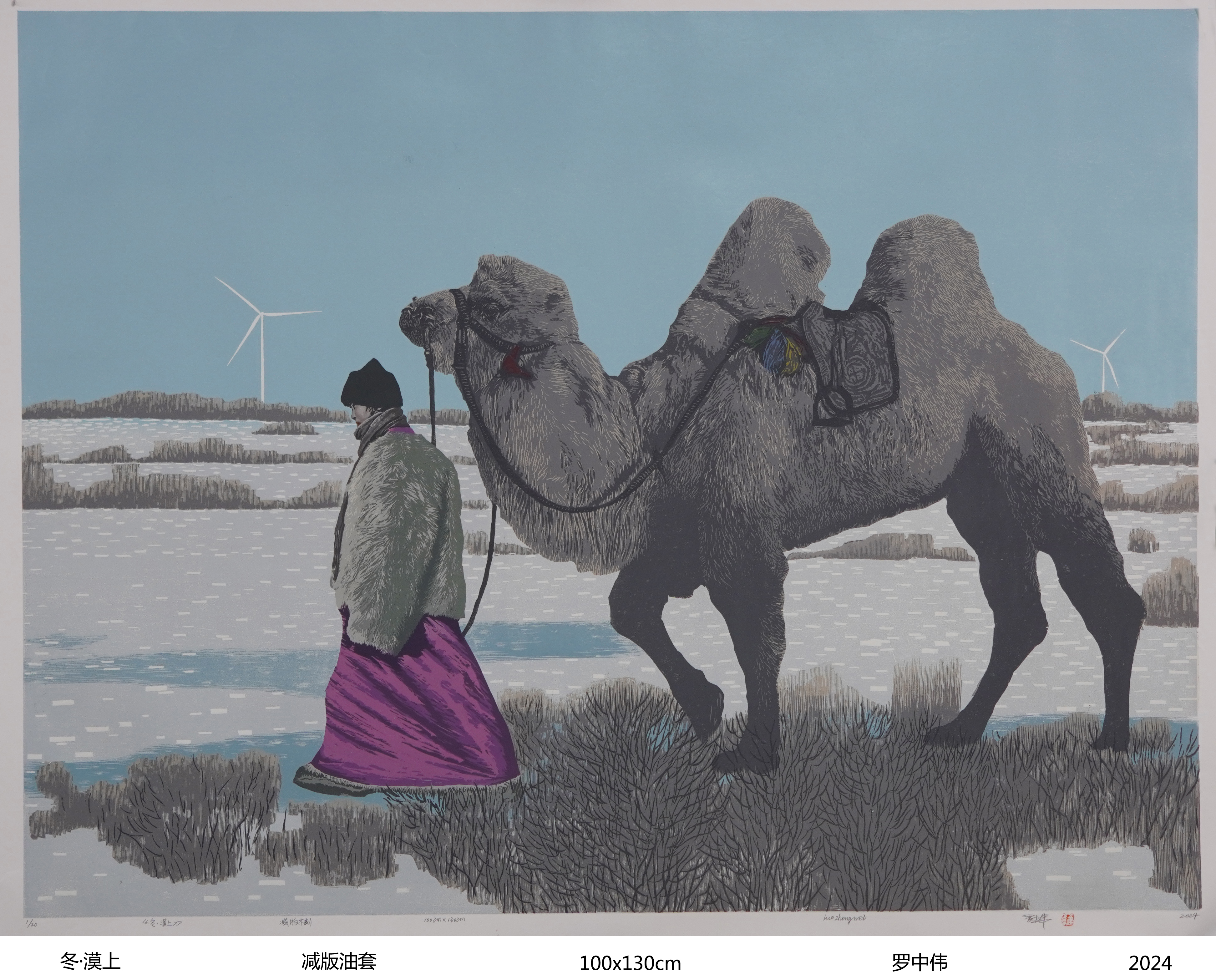 本次展览以"苍原·牧歌"为主题,罗中伟以自然为境,深藏意向,将草原的天光云影、雪原辙印、勒勒车辙、牧人身影、草木清嘉,凝铸于方寸版木之间。在创作中,罗中伟既坚守哲里木版画粗犷豪放的地域风骨,又在木刻的语言探索中独辟蹊径,以洗练的构图、精准的刀法、豁达的意境,让传统版画与当代审美相融,草原的辽阔、生命的坚韧、生活的诗意,在刀与木的凝实中跃然浮现。