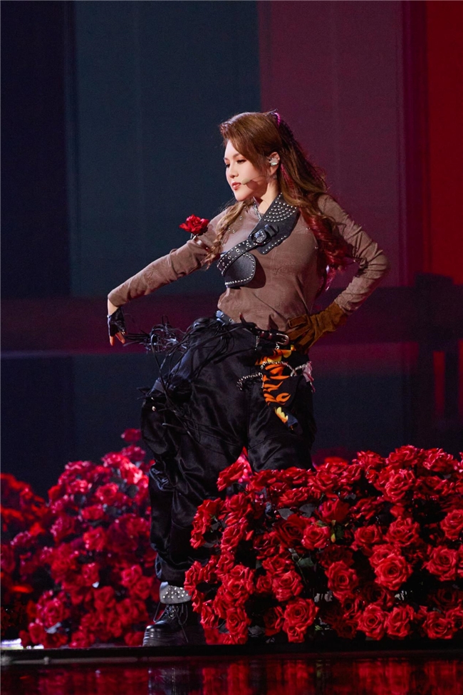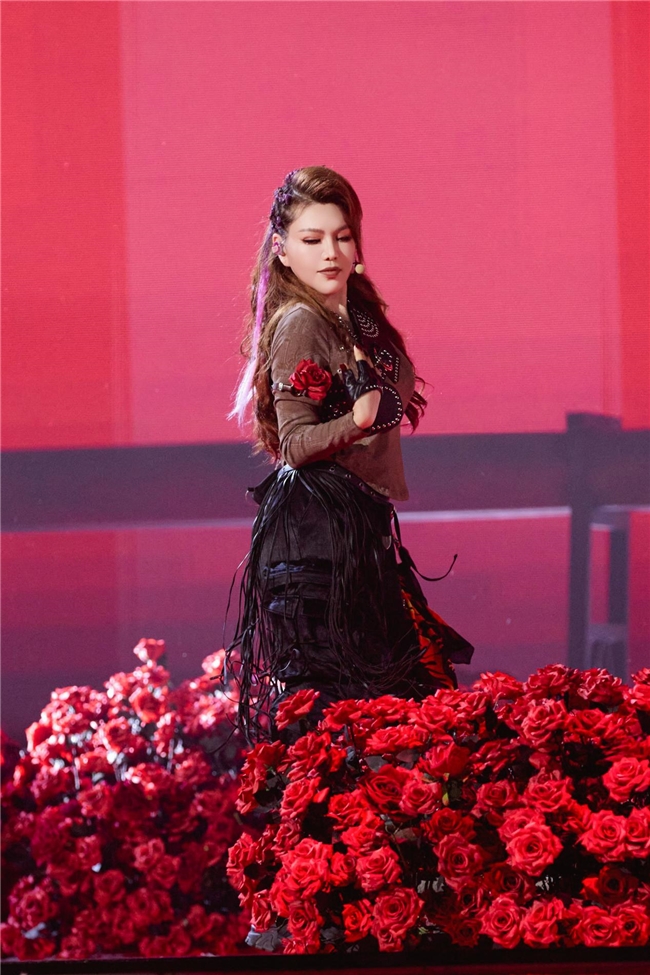 乌兰图雅每一个眼神、每一个姿态都充满舞台掌控力,将歌曲中 “挣脱束缚、绽放自我” 的内核完美传递。