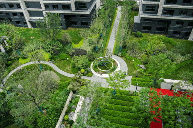 园林景观:五大组团+下沉庭院,浓荫静谧