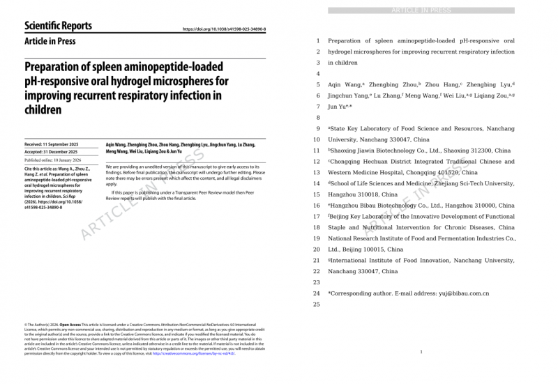 针对儿童生理特点及成长阶段的精细化营养需求,佰倍优牛脾肽以优质原料为核心,依托创新pH敏感型水凝胶制备技术,适配儿童吸收特点,完整保留营养活性,为儿童成长提供友好适配的营养补充方案。本次联合科研成果,进一步印证了产品在儿童日常营养补充中的适配性与价值,为儿童精细化营养补充提供了科学可靠的落地方案,切实践行了品牌“精准营养、照顾全家”的核心主张。