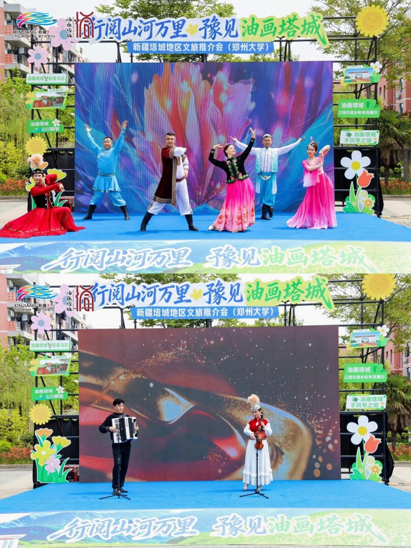 2026年4月14日,以“行阅山河万里 豫见油画塔城”为主题的新疆塔城文旅推介活动在郑州大学温情启幕。此次活动搭建起河南与塔城文化互鉴、文旅互通的坚实桥梁,通过文旅资源推介、文艺展演、互动体验、文旅市集等多元形式,让中原学府的文脉书香与油画塔城的多元民俗深度交融,让青年学子沉浸式领略“油画塔城”的独特魅力与蓬勃生机。