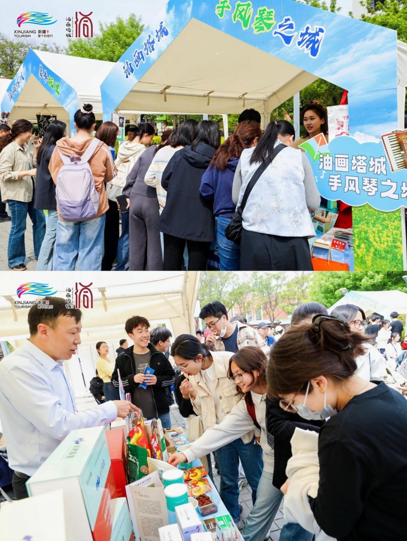 与此同时,《塔城地区文旅宣传片》《魅力新疆 才聚塔城》两部宣传片循环播放,吸引莘莘学子驻足观看、认真了解。在核心文旅推介环节,主办方全方位、立体式展示了塔城丰富的文旅资源、浓郁的民俗风情与精品旅游线路,帮助在场学子全面认识塔城、感知塔城,进一步加深了大家对“油画塔城”的认知与向往。