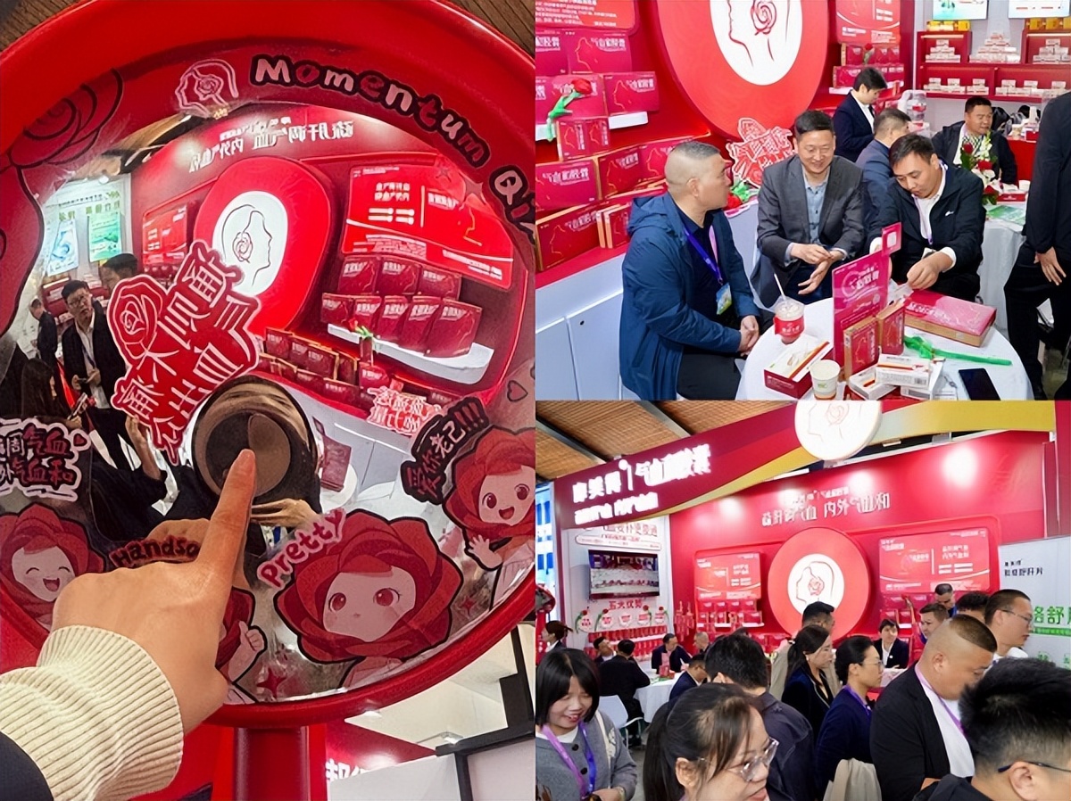 线下展示环节,摩美得气血和胶囊打造了集产品展示与互动体验于一体的特色展位。展位不仅清晰呈现了气血和胶囊的百亿销量底蕴,还特别推出“气血通透戳戳镜”玩法。