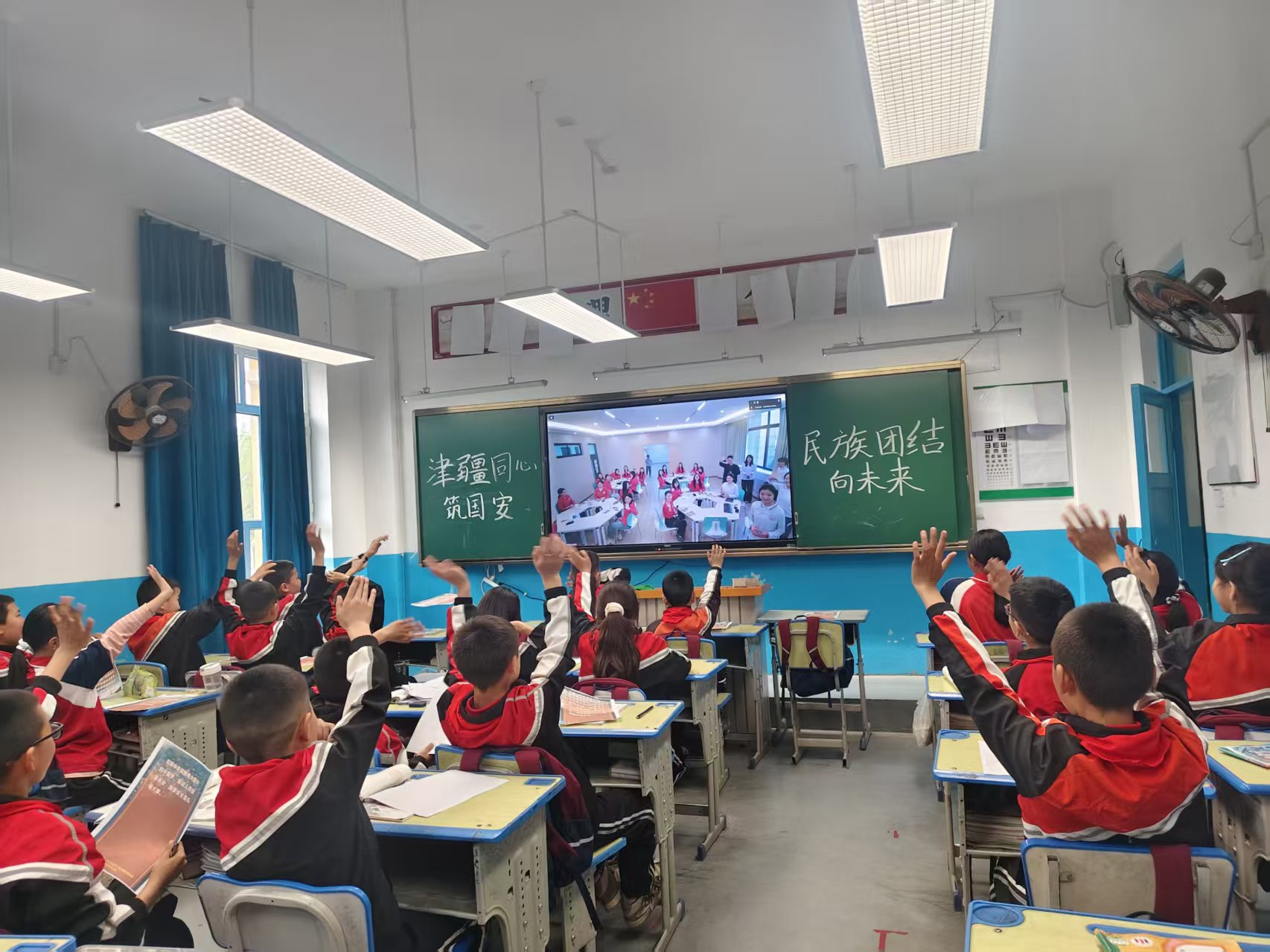 “同学们,今天我们的教室打开了一扇‘魔法窗’――推开它,就能看见3200公里外的天津。”随着谢依特小学支教教师、天津师范大学西部计划志愿者郭正媛充满童趣的引导,屏幕两端的师生瞬间打破时空界限。天津会场的马克思主义学院学生理论宣讲团成员与边疆小学的学生实时互动,天山脚下的课堂与渤海之滨的校园通过网络紧紧相连。