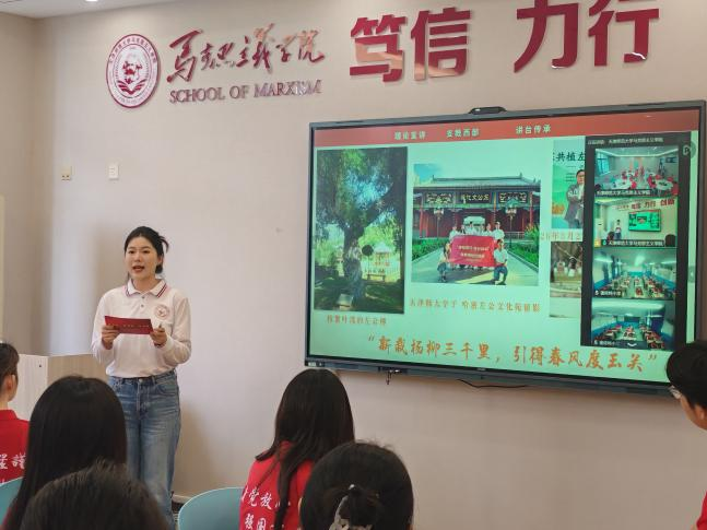 “同学们,你们知道吗?国家安全就像一位‘隐身超人’,平时我们看不见它,但它却时刻守护在我们身边。”针对小学生认知特点,宣讲团成员刘淇、殷晓琪化身“云端讲解员”,带领边疆学生沉浸式参观马克思主义学院“安邦固本 强基致远”总体国家安全观主题展览。从国家安全的基本内涵到各领域实践,再到天津的具体案例,复杂的理论通过生动的展板和故事变得可知、可感、可亲近,在孩子们心中勾勒出国家安全的立体图景。