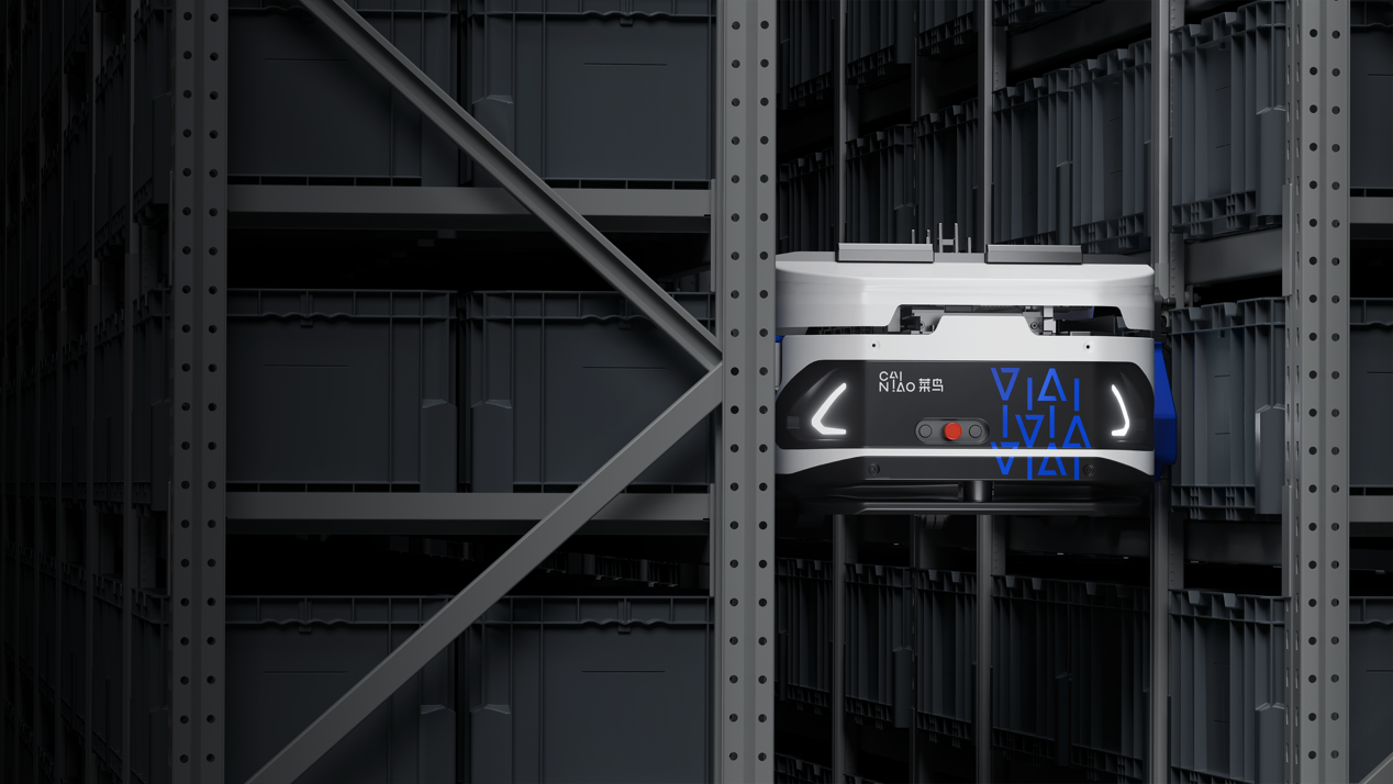 据了解,菜鸟ZeeBot是一种结构灵活、专为仓储环境设计的特种机器人。它打破了传统自动化仓库中地面搬运与立库垂直搬运相互割裂的作业模式,同一台机器人既能在地面高速移动,又能直接攀爬货架进行存取。