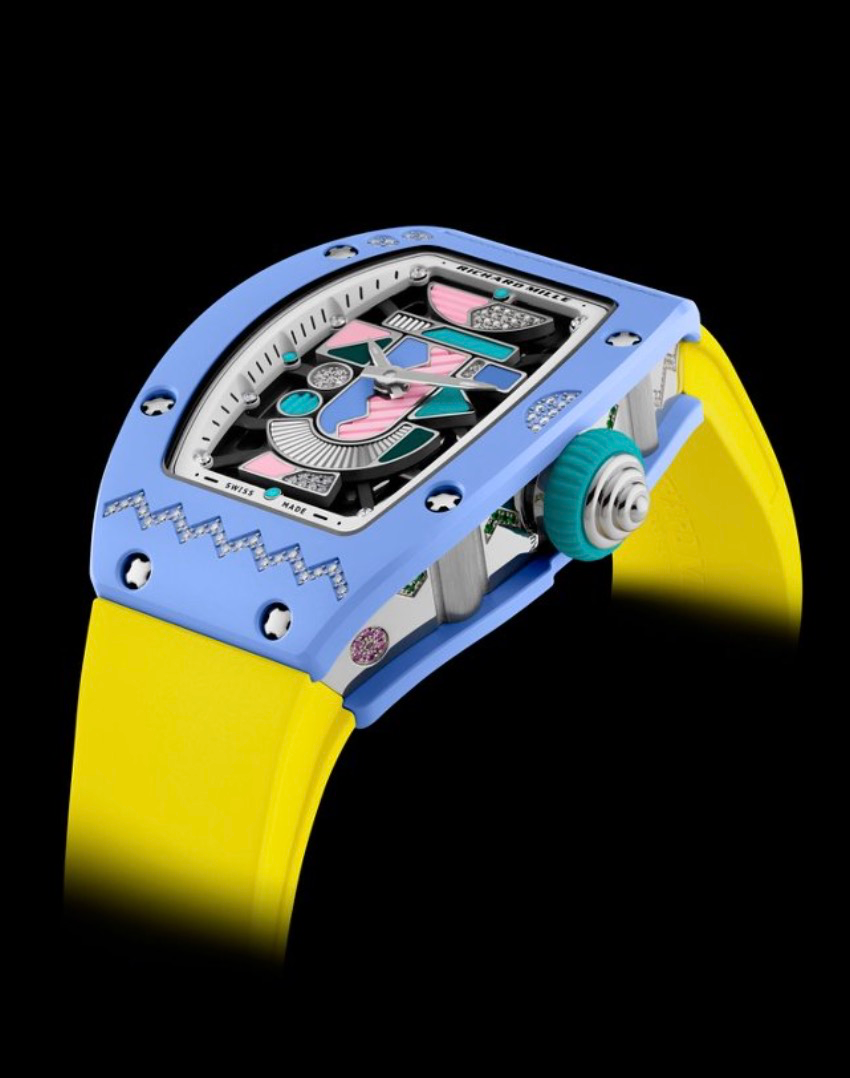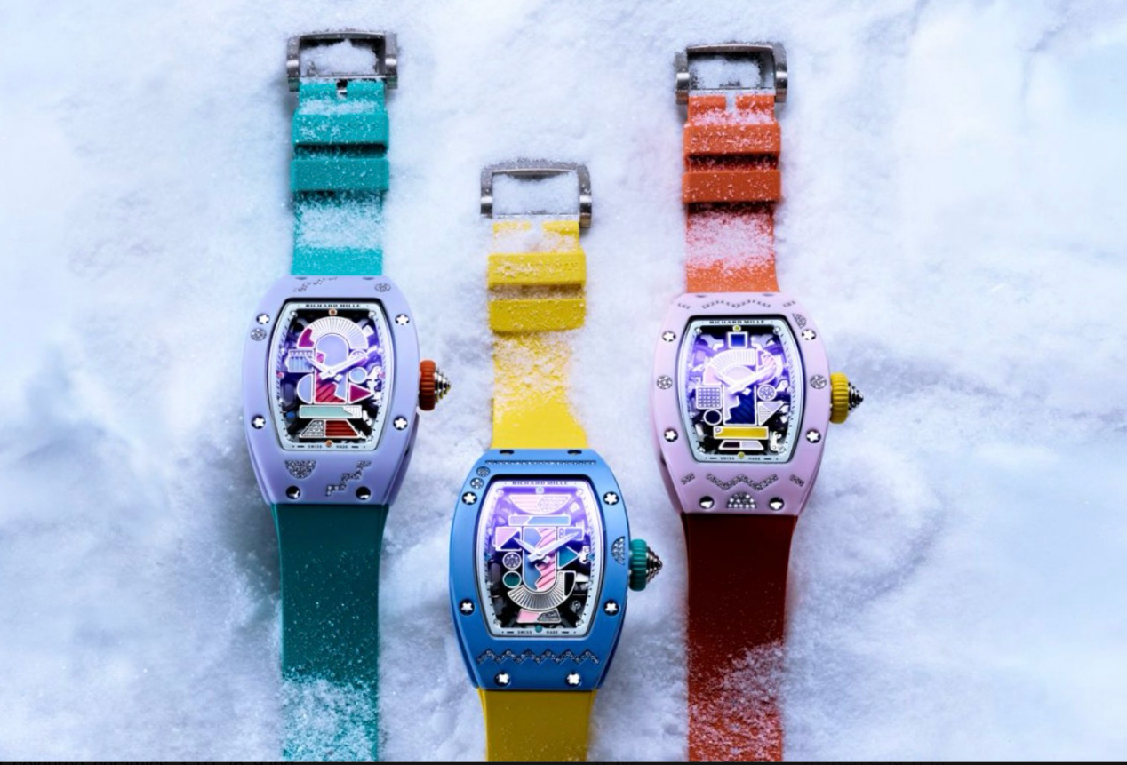 该系列设计灵感溯源20世纪80年代的创作活力—那是一个崇尚自由突破、大胆撞色、善用先锋材质的时代。RICHARD MILLE承袭这份时代底蕴,以多重装饰工艺赋予表盘丰富层次。正如RICHARD MILLE品牌创意与研发总监Cécile Guenat在打造前两季系列腕表时所言:“此系列腕表以鲜活色彩与质感碰撞为巧思,塑造独树一帜、颠覆常规的视觉标识。”