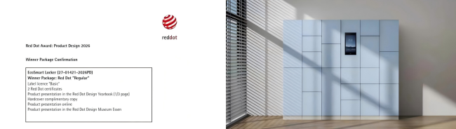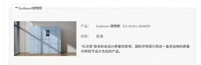 近日,2026年德国红点产品设计大奖揭晓,厦门富桂通科技有限公司(简称“富桂通”)旗下EcoSmart智能储物柜凭借前瞻性设计理念、极致产品体验与硬核创新实力,成功摘得2026年红点产品设计大奖,并在德国iF设计大奖评选中以317分高分挺进决赛,一举拿下德国两大国际顶级设计奖项,让中国智能存储装备原创设计再次赢得世界认可,用硬核实力书写了中国品牌在全球设计领域的崭新篇章。