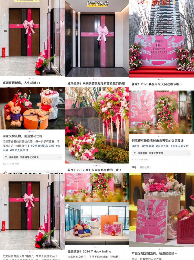 项目交付时,有业主在小红书发收房照片,配文是“这收房体验,算是超出预期了”。还有人拍下星空穹顶的车库,说“这比很多酒店大堂还讲究”。随后,更多人自发在社交平台“花式晒房”,慢慢形成了一种自发的“护盘”趋势——从自身出发,把自家小区当事业来经营,为小区形象和未来二手估值做正面引导。