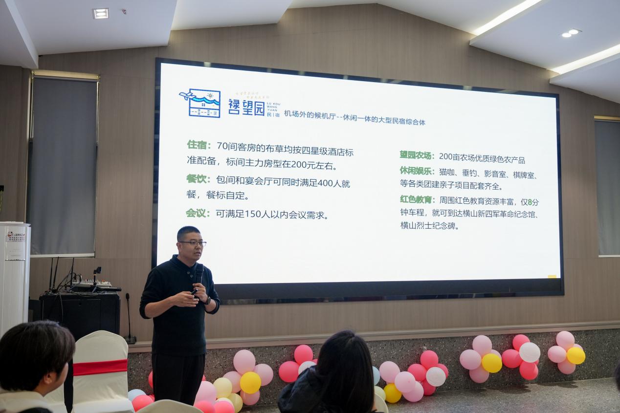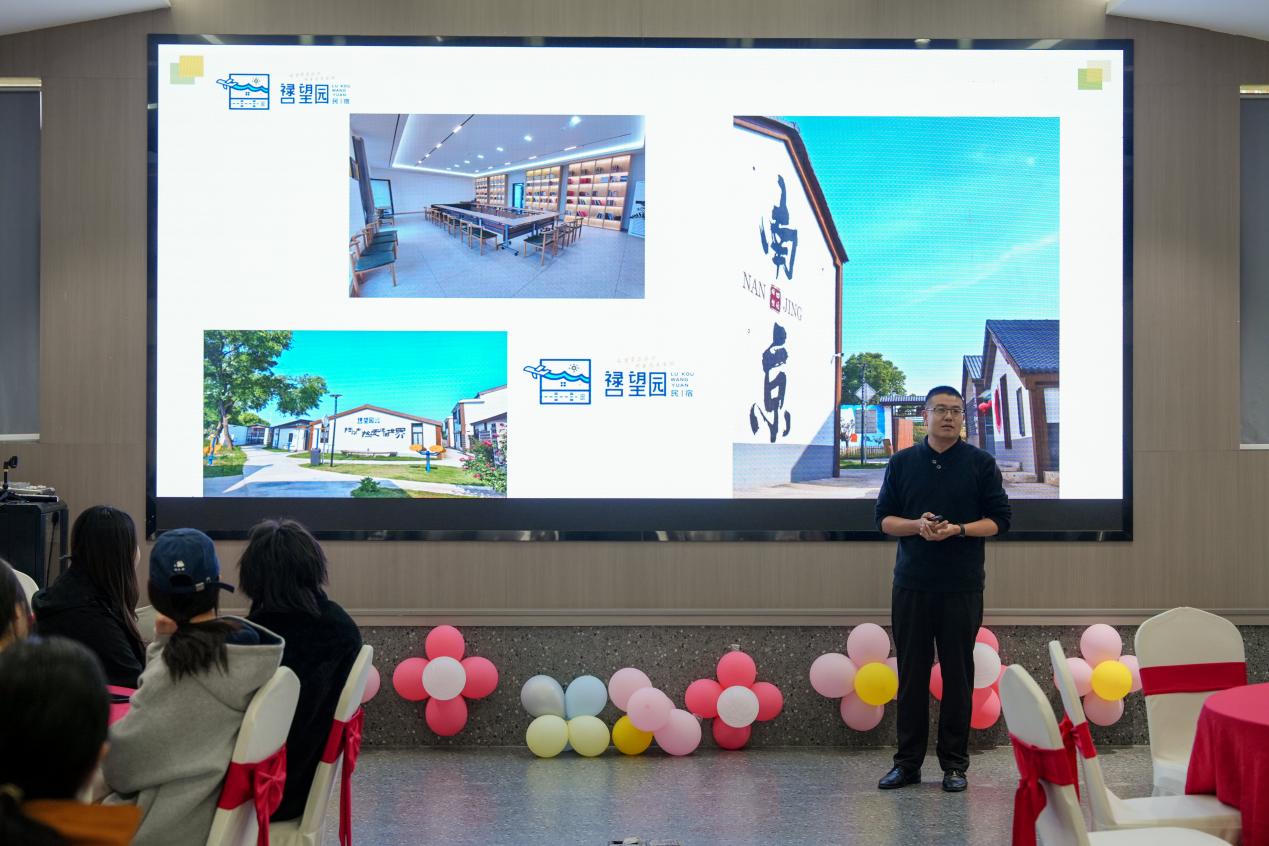 在望园民宿会议室,邢花主任勉励全体参训同学,以此次产教融合实训为契机,把创意想法落地为可执行的运营方案,在实战中锤炼自身核心竞争力。南京望园文旅科技有限公司董事长漆金刚对学院师生一行的到来表示热烈欢迎,漆金刚董事长系统介绍了望园民宿的品牌发展历程、核心定位、业态特色与运营规划,重点围绕民宿在小红书、抖音等新媒体平台的品牌传播需求、内容打造方向与预期成果目标进行了详细讲解,同时表达了对深化校企合作、实现资源互补、共赢发展的热切期待。