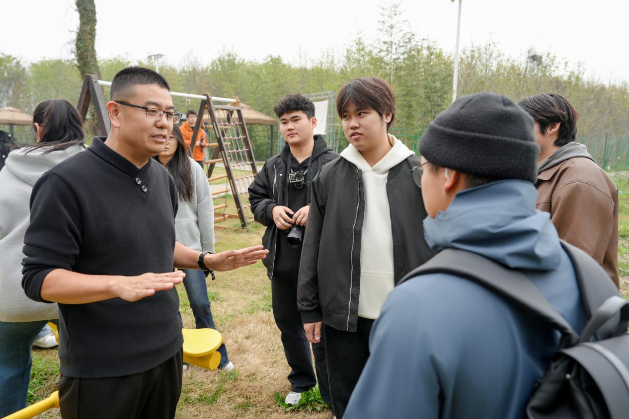 讲解完毕后,漆金刚董事长带领师生团队走访了民宿的公共休闲区、网红打卡景观区、丛林喵屋宠物服务店等核心运营场景。漆金刚董事长针对每个场景的设计理念、客群定位、运营亮点与传播价值进行了细致深入的现场讲解,全方位拆解了民宿运营的核心逻辑与细节要点。