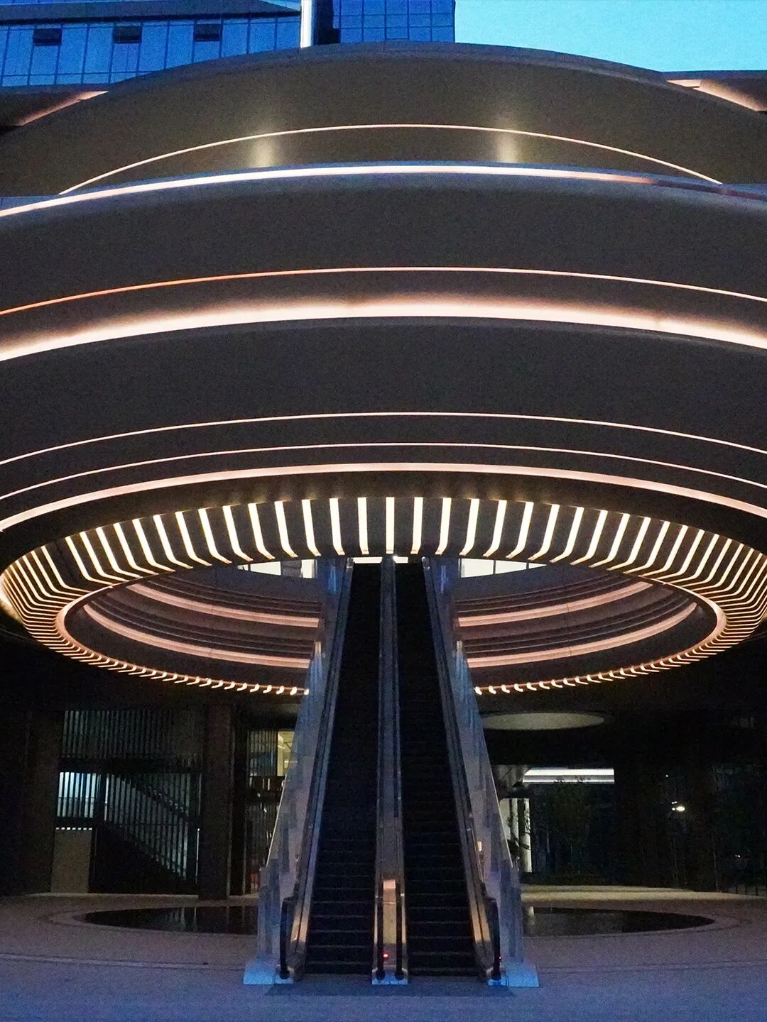 夜幕降临时,在南京金陵天地拍摄“小曼哈顿”,依旧震撼;另一侧,阿里江苏总部园区内的“飞碟”又给这里增添了一份神秘感。