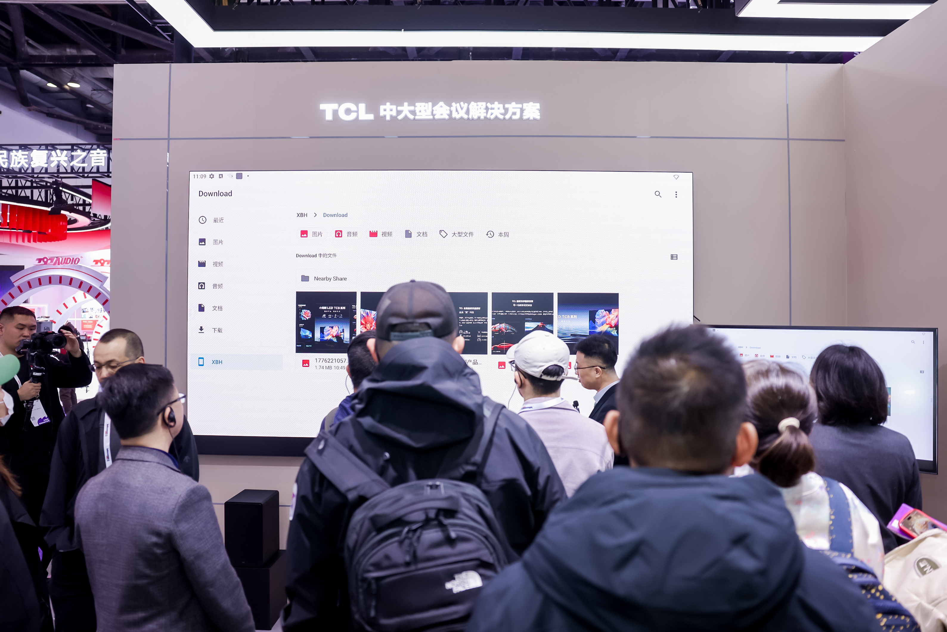 除此之外,TCL还带来智慧办公与LED大屏两大场景方案,全面覆盖企业高效协作与专业显示需求。作为会议电视行业标准唯一牵头单位,在智慧办公展区,TCL带来会议电视 E60、以及会议平板 V66N、136吋LED一体机等明星产品。TCL E60 以防眩光、AI 画质增强、4K 无损投屏、深度适配主流会议软件等能力,解决传统会议显示痛点;V66N 搭载 AI 摄像头、降噪麦克风与 AI 会议助手,支持实时翻译、自动纪要,让混合办公更高效;大小屏联动方案实现小屏控大屏,适配各类高端会议场景。与此同时,LED大屏展区则主推TCB系列小间距产品,搭载A+级全倒装COB面板与黑晶膜材,具备高对比度、电影级色域、护眼防眩、超薄节能、七重防护等优势,可广泛应用于企业展厅、应急指挥、多媒体教室等专业场景,以高品质显示为大型空间提供稳定可靠的解决方案。