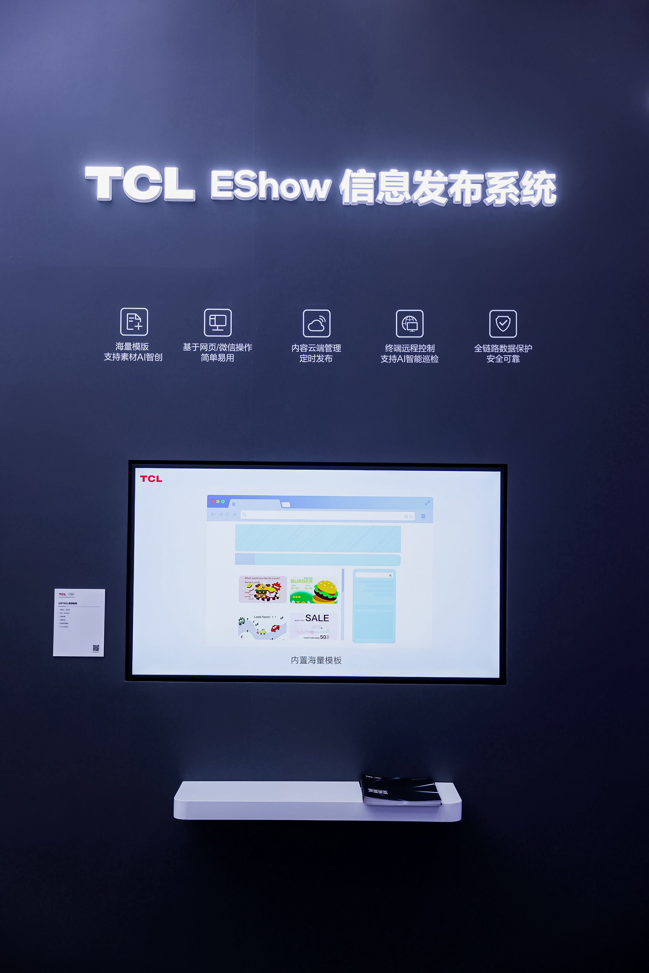 不难看出,作为商用显示赛道头部品牌,TCL智慧零售方案具备三大不可替代优势:一是显示技术领先,高色域、高亮度、防眩光等特性,适配复杂商业环境;二是全尺寸全形态覆盖,从桌面水牌到超大联屏,满足单店、连锁、综合体等不同业态需求;三是软硬件一体化,商用智屏+EShow信发系统+AI能力,从内容发布到数据管理一站式解决,大幅降低部署与使用门槛。