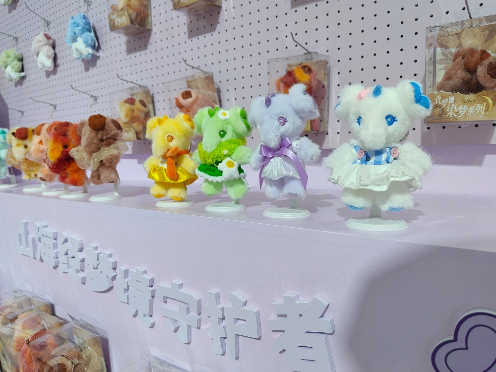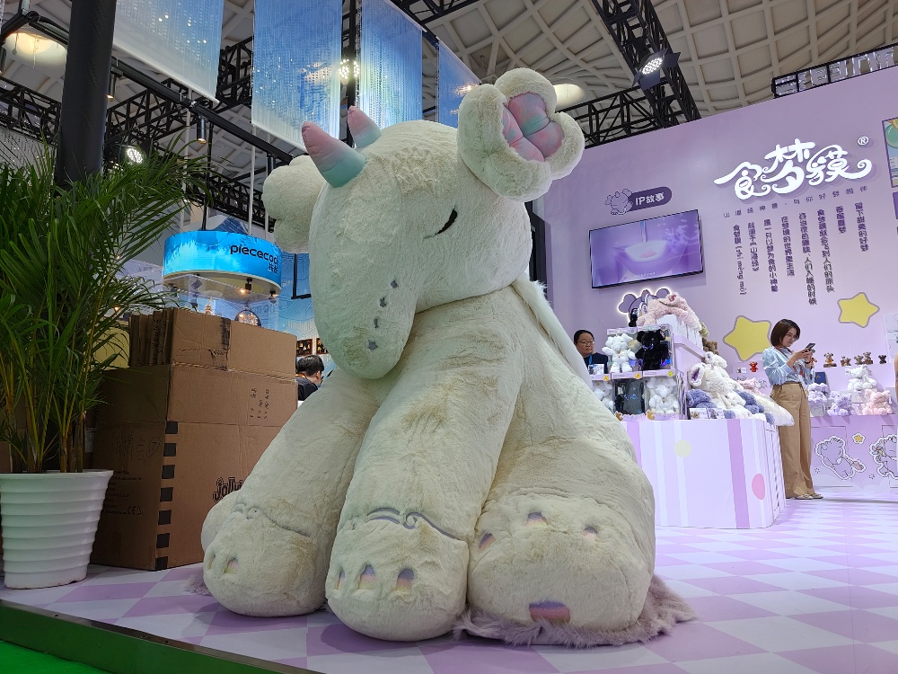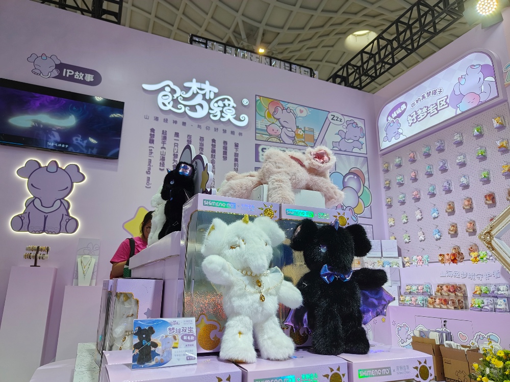 国潮山海经文化产业(广东)有限公司品牌营销总监吴巧媚介绍,“食梦貘”原型取自《山海经》,以“吞噬噩梦、守护好梦”为寓意,融入四叶草花瓣耳朵、心形翅膀、如意祥纹等年轻化设计,强化了治愈属性。此次推出的毛绒系列、植绒手办等多款产品,精准触达关注年轻人的情感诉求。