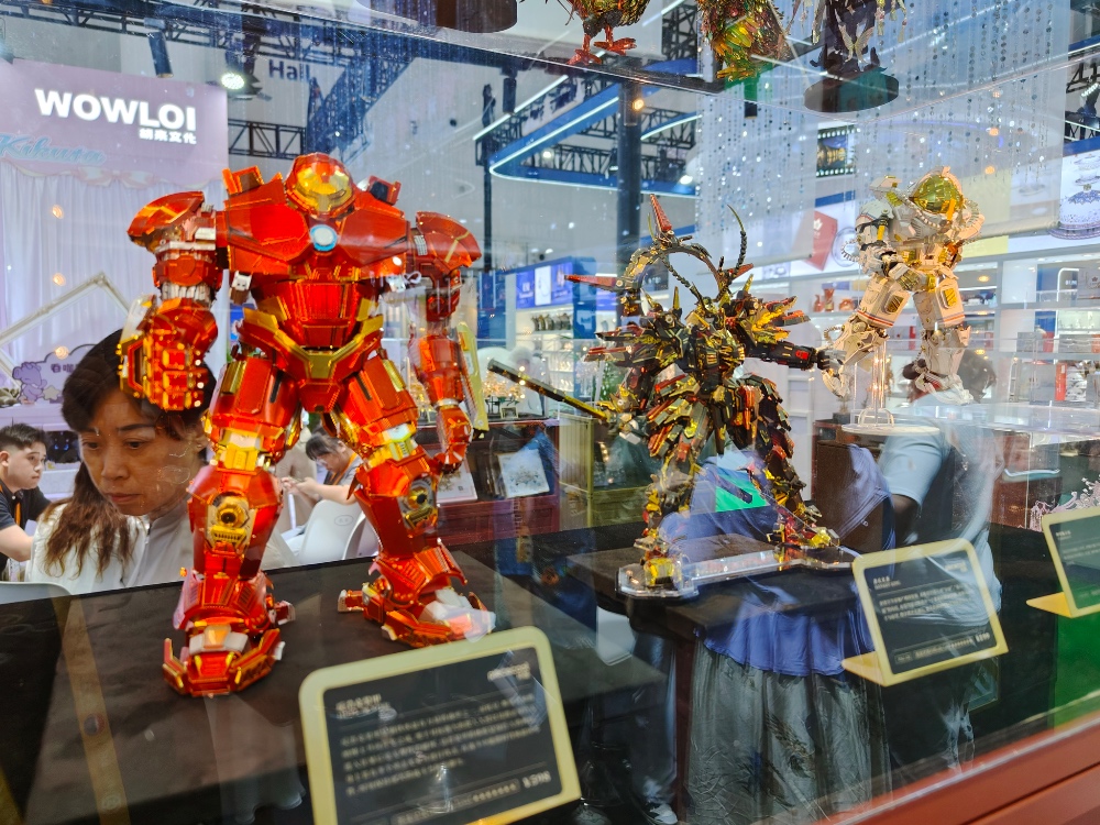 此次展会上的国潮出海展馆,金属立体拼图、来自山海经的IP潮玩、国风机甲在东莞潮玩展区持续迎来关注。