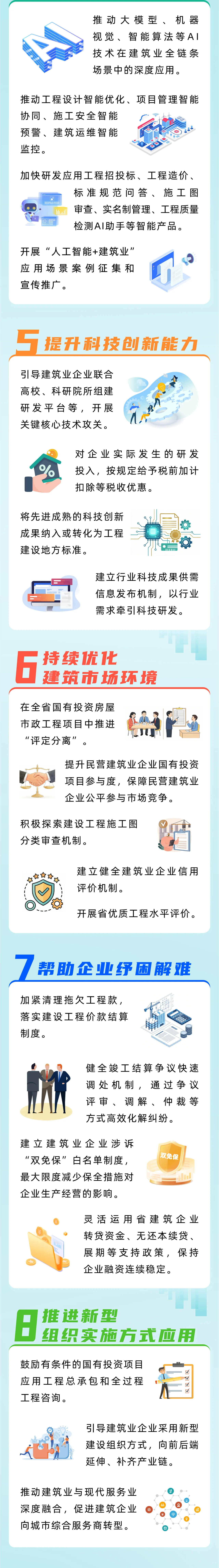 (五)提升科技创新能力。引导建筑业企业联合高校、科研院所组建研发平台等,开展关键核心技术攻关。将先进成熟的科技创新成果纳入或转化为工程建设地方标准。建立行业科技成果供需信息发布机制,以行业需求牵引科技研发。