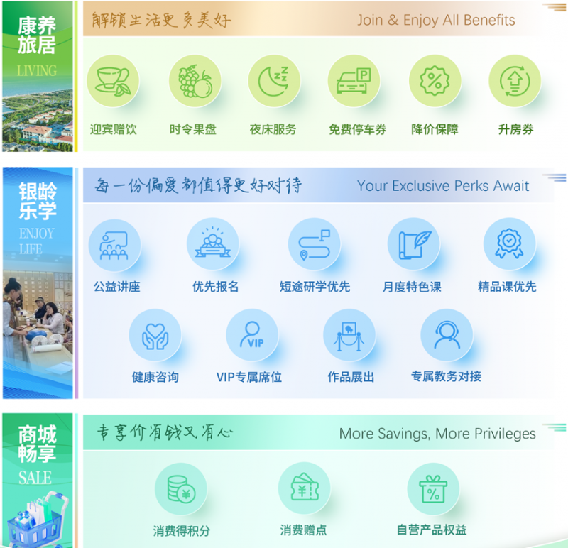 本届消博会上,国药康养会员权益体系正式发布,会员体系全面覆盖康养旅居、银龄乐学、商城畅享三大维度,通过整合出行服务、康养体验、专属保障等核心资源,为会员提供全方位的康养产品及服务。