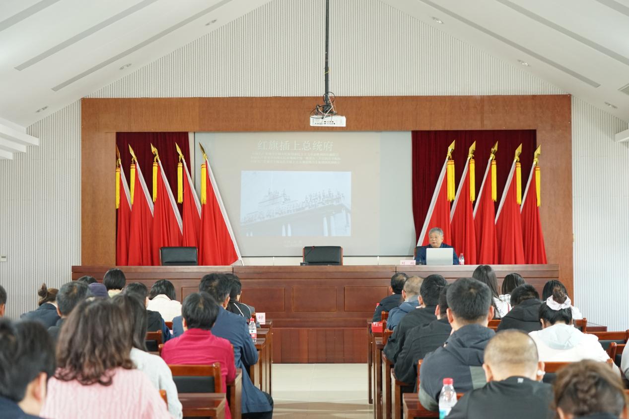 一段岁月波澜壮阔,一种精神穿越历史。本次活动特邀南京党史辅导团成员、省政协一级调研员刘刚作《红旗插上“总统府”》专题讲座。刘刚老师以1949年4月23日南京解放为核心,生动还原人民解放军横渡长江、攻克总统府的历史瞬间,深刻阐释南京解放的里程碑意义与伟大建党精神的时代内涵。权威翔实的史料、深入浅出的讲解,带领现场观众重温烽火岁月,感悟中国历史的沧桑巨变与人民当家作主的时代新篇,让红色历史直抵人心、引发共鸣。
