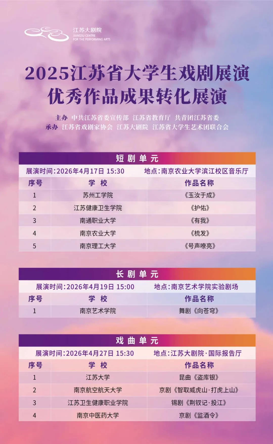 没有专业演员,没有华丽舞美,90分钟的展演,在掌声与感动中落下帷幕。五部短剧,五种青春模样,共同书写了当代江苏大学生的精神风貌。自2018年创办以来,江苏省大学生戏剧展演已走过七年历程,成为全省规模大、参与度高、影响力广的校园戏剧品牌。正如专家所言,“大学生戏剧展演最大的意义,不在于舞台有多华丽、演技有多精湛,而在于让青年成为戏剧的主角,让时代成为戏剧的主题。”
