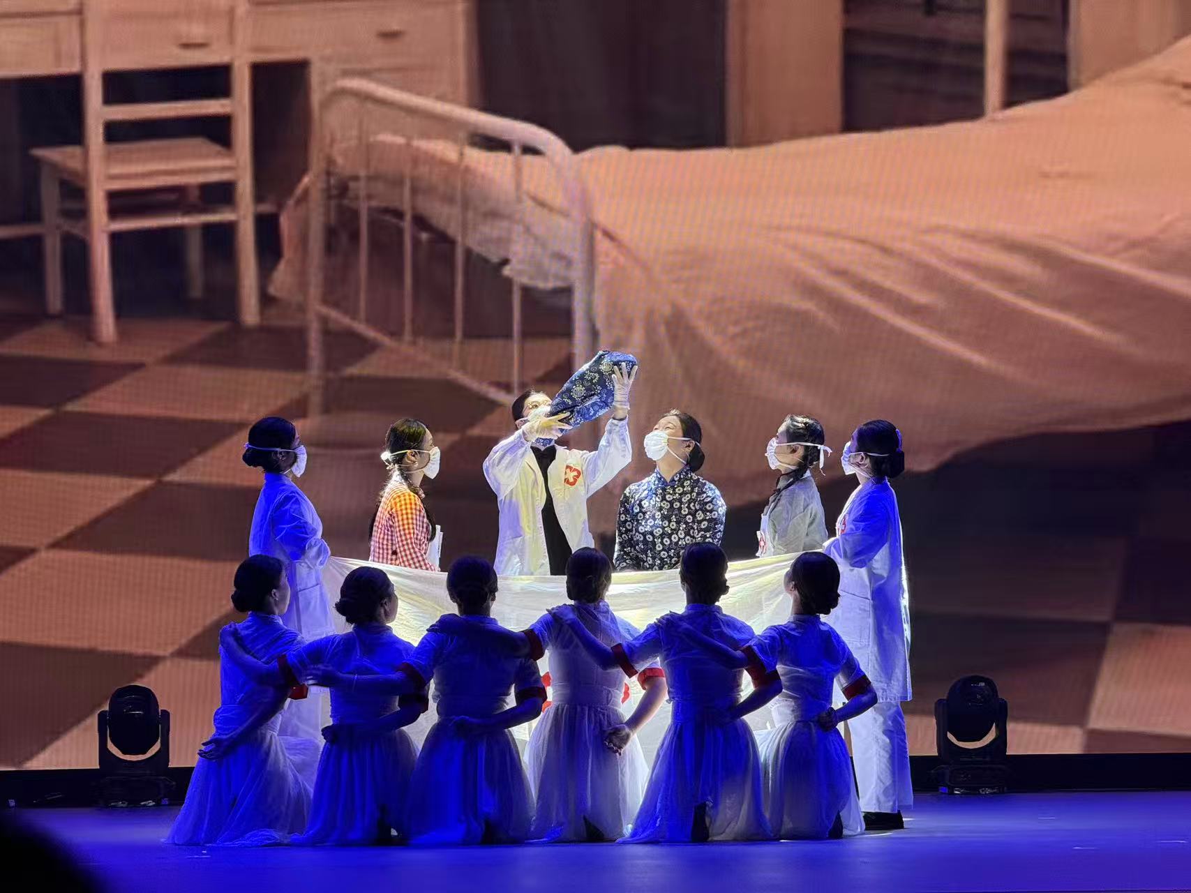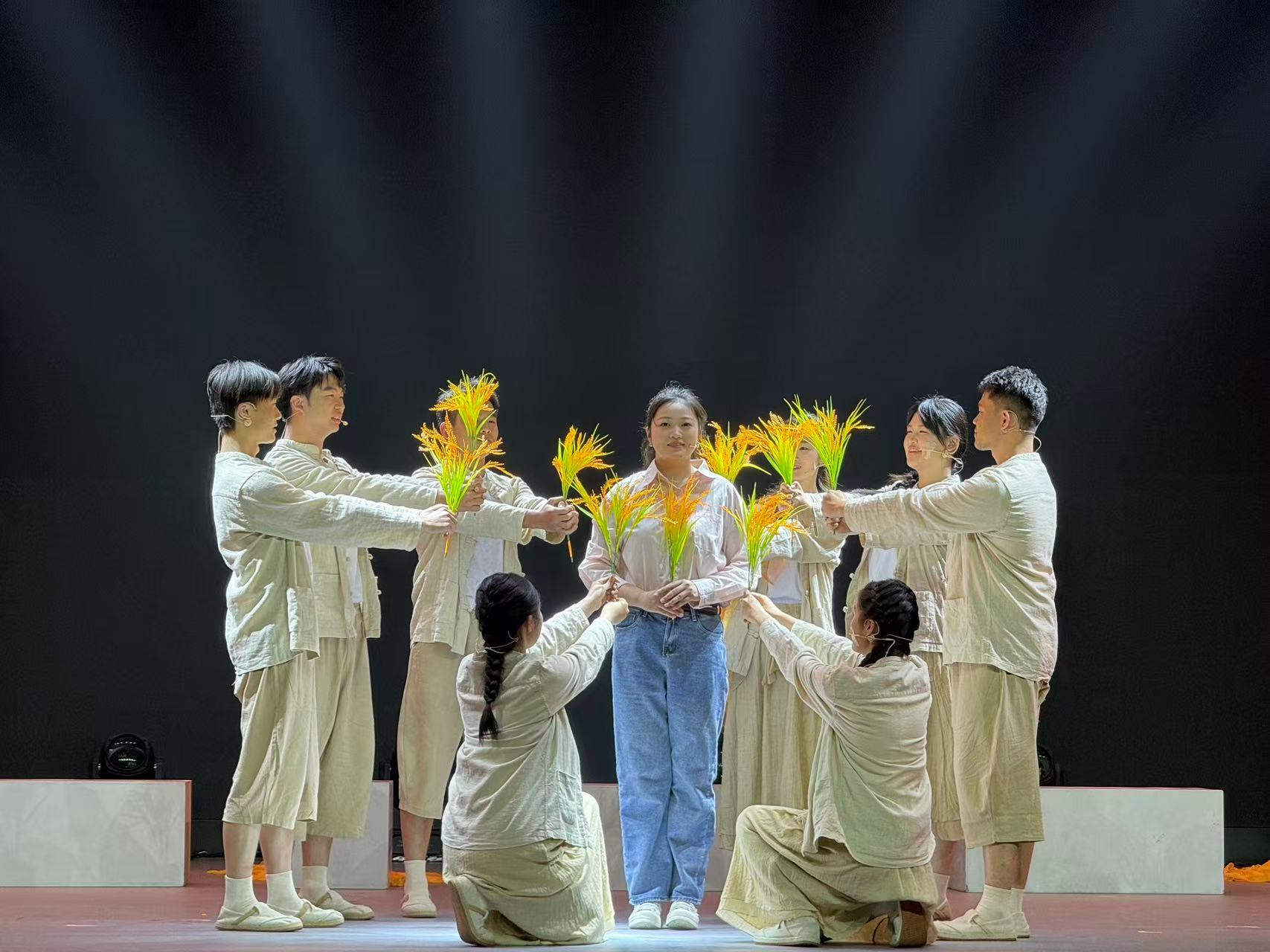 下午3时30分,音乐厅内座无虚席,灯光亮起,五部风格各异、主题鲜明的短剧依次上演。开篇之作《玉汝于成》率先将观众带入乡村振兴的火热现场。苏州工学院学子将目光投向蓝色海洋,讲述毕业生张海放弃上海外企高薪工作,毅然返乡传承紫菜科研成果,带动乡邻共同致富的故事。紧随其后的《护佑》,则将镜头对准百年前的医者先驱。江苏卫生健康职业学院的学子们,以杨崇瑞博士为原型,再现她归国投身妇幼卫生事业、在战火中救死扶伤的感人历程。舞台上,“牺牲精神,造福人群”的誓言穿越时空,直抵人心。南通职业大学的《有我》用温暖笔触,书写青年支教的动人故事。