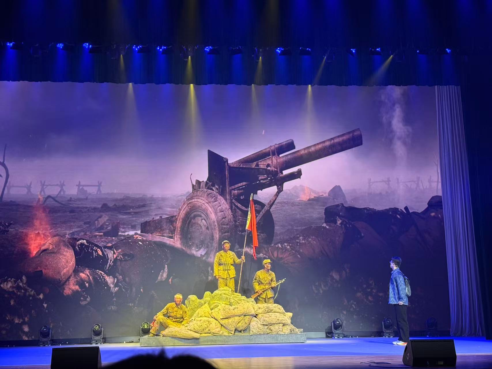 当红色信仰遇上青春表达,南京理工大学的《号声嘹亮》以独特的穿越叙事,成为师生们眼中特别“好哭”的故事。剧目立足学校兵器博物馆的独特育人场景,借助一场连接历史与现实的奇幻穿越,让当代大学生与长津湖战役中的志愿军战士展开了一段感人至深的跨时空对话。当舞台上“亲身体验”革命岁月的穿越学子,终于读懂先辈“为何而战”的崇高信仰,最终实现从“读懂历史”到“扛起使命”的青春觉醒和成长,台下不少观众都悄然泪目。