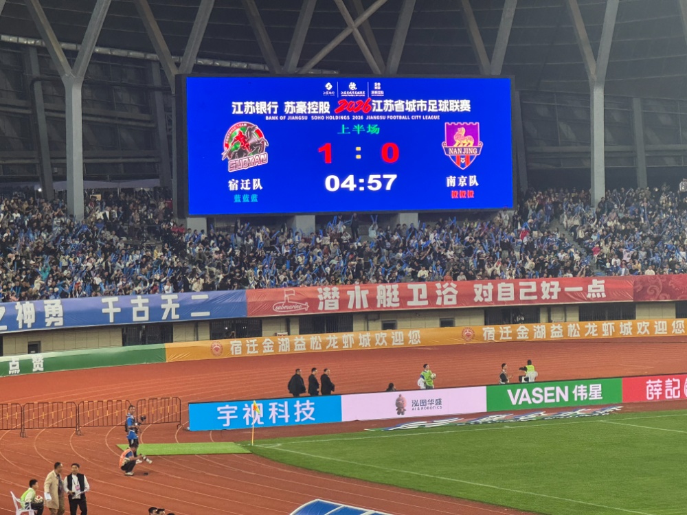 4月18日晚,2026江苏省城市足球联赛(“苏超”)第二周,宿迁奥体中心。终场哨响,主场作战的宿迁队2比0战胜来访的南京队,新赛季主场首秀拿下开门红。南京队虽客场落败,但整场比赛展现出的战术素养与顽强斗志同样值得掌声——这支上赛季的季军队伍拼到了最后一刻,竞技体育的魅力,正在于强者之间的彼此成就。