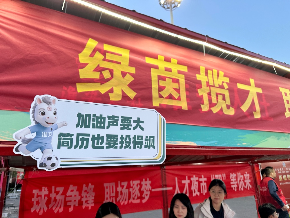 淮安市人社局副局长严斌表示,把“人才夜市”开进苏超赛场是一次“体育+人才”的跨界尝试,当地采用了“1+N”全域联动模式——在主赛场引入4家百亿级龙头企业,9个县区分会场立足本地特色联动了81家重点企业和中小微商户,带来了研发、行政、技术技能等3100多个实用岗位,把人才服务送到年轻人聚集的地方,让就业服务更有温度、更接地气。