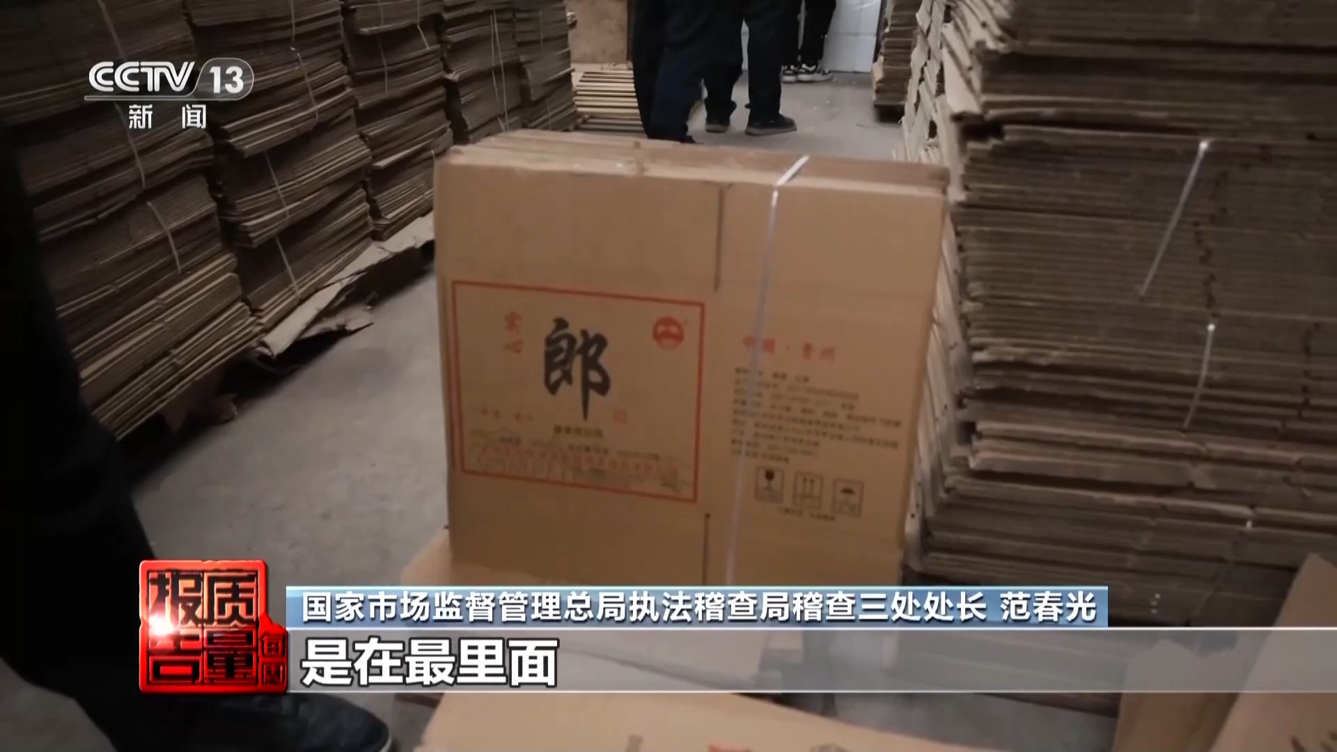 国家市场监督管理总局执法稽查局稽查三处处长 范春光:金兴大曲少两个点是全兴大曲,五粮酒改一个字叫五粮液。这些都是打擦边球。像郎酒这种纯粹假冒的包材在最里面,这种是铁证,就是侵权的,没什么可说的。