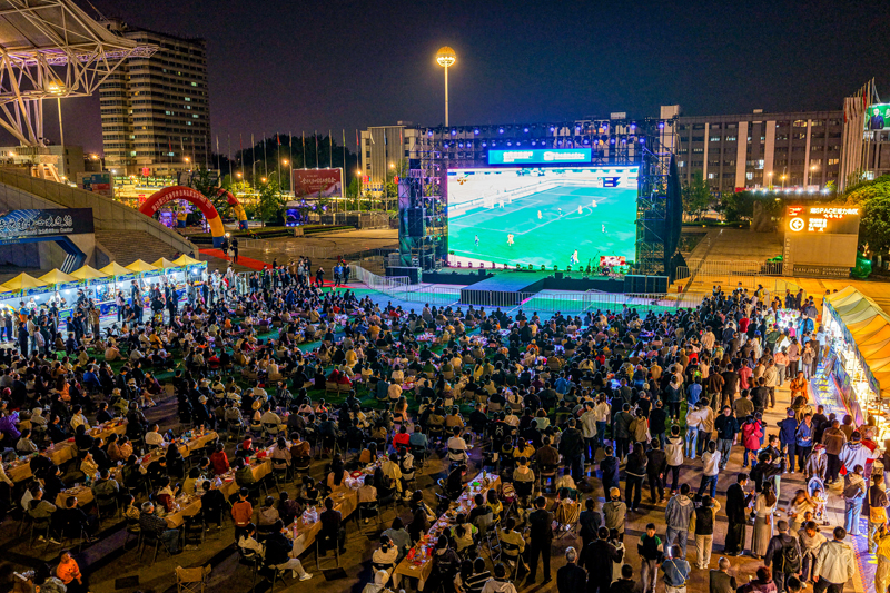 记者在现场看到,除了巨幕观赛,活动巧妙地将体育与文旅、演艺、夜经济深度嵌套。赛事直播前后穿插的CITYLIVE音乐演出,将单一的观赛行为拉长为“看球+听歌”的复合型体验。现场,近40家餐车与摊位集结了青岛啤酒、六只天鹅精酿及各类特色小吃,将“看球标配”转化为餐饮消费,有效拉动了现场客流量转化为消费增量。