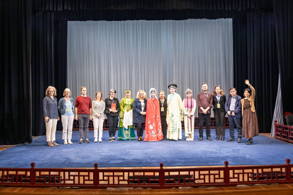 交汇点讯 4月18日晚,江苏省昆剧院兰苑小剧场座无虚席。参加“汉学家走读江苏”活动的汉学家、翻译家们早早预订了前排座位。当晚,兰苑上演《牡丹亭》小全本,“昆五代”优秀闺门旦演员李静阳饰演杜丽娘。谢幕后,这位23岁的中国姑娘被外国友人团团围住,争相合影留念。