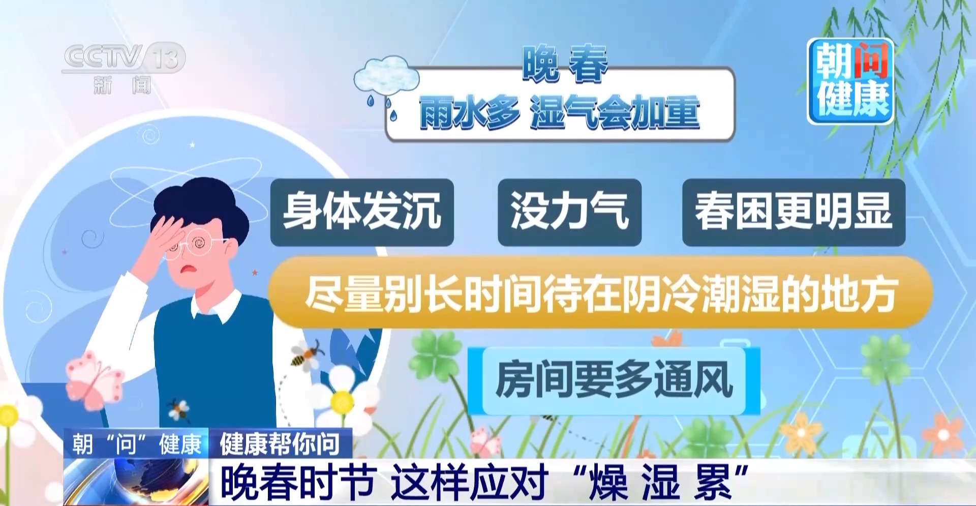 晚春雨水多,湿气也会加重,人容易觉得身体发沉、没力气,春困也会更明显。尽量别长时间待在阴冷潮湿的地方,房间要多通风。少吃生冷、油腻和过甜的食物,避免加重体内湿气。