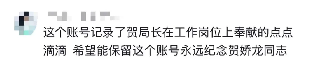 对于账号的此次更新,评论区中,不少网友表示,希望能保留账号,以此纪念贺娇龙的奉献。