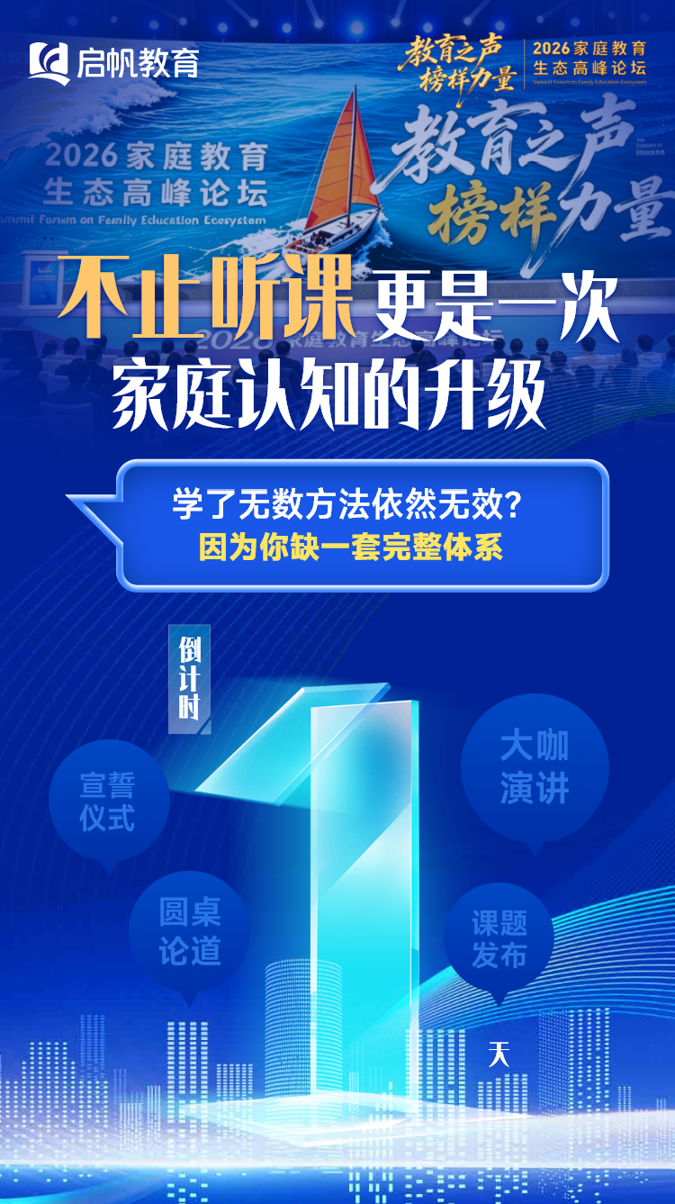 从理念革新到方法落地,从专家分享到课题发布,从行业交流到校企共建,本次峰会将全面构建新时代家庭教育生态体系。4 月 21 日,让我们一同相聚启帆教育家庭教育生态高峰论坛,告别教子焦虑,重塑亲子关系,与全国教育大咖一起,读懂成长、读懂家庭、读懂未来。