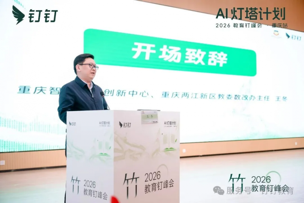 重庆智慧教育创新中心、重庆两江新区教委数改办王冬主任代表两江新区致欢迎辞。