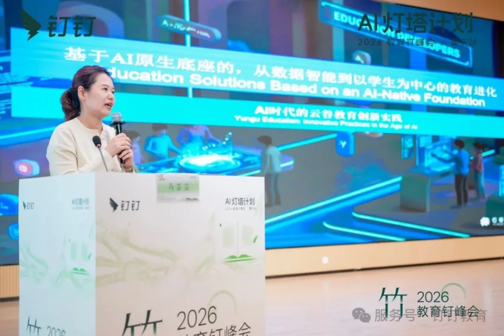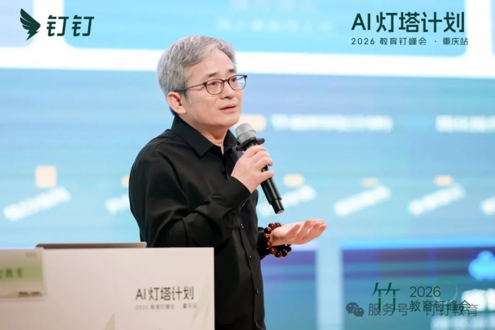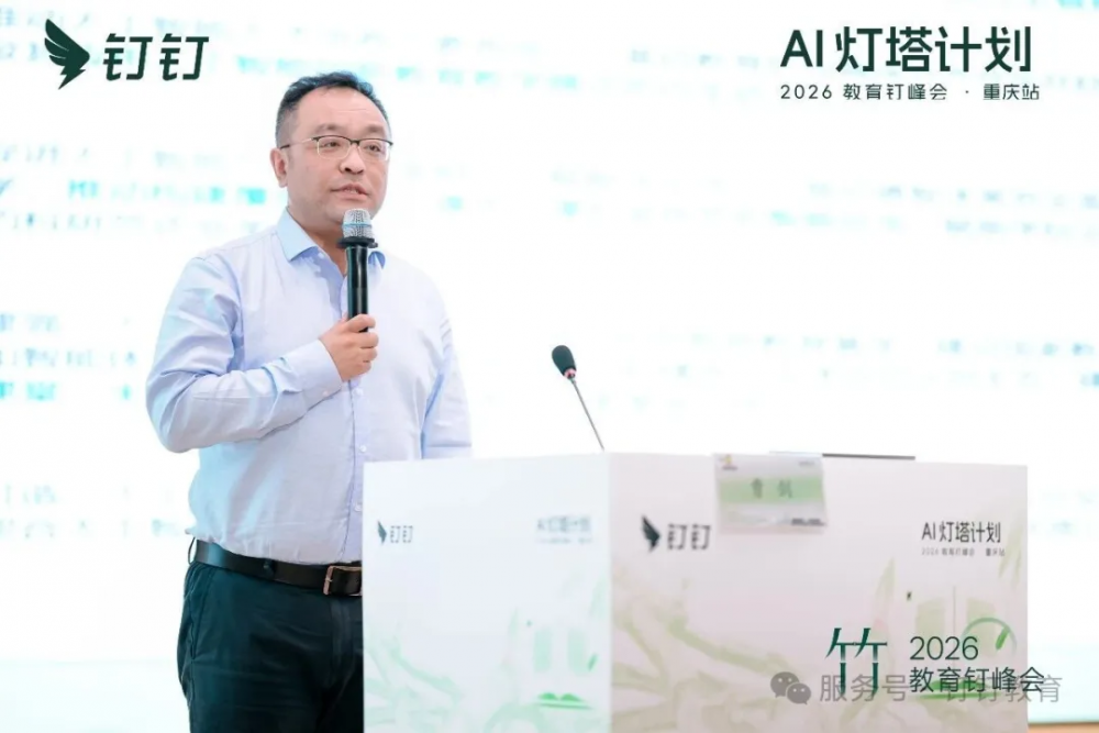 随后,钉钉教育总经理曹剑发表主旨演讲,提出了AI时代教育的核心使命已从培养有用的人转向让人变得有意义。他指出,未来学生亟需三大能力:内驱力、复杂性思维、审美与哲学提问,“AI能够回答怎么做,但永远无法回答为什么,这才是我们应该追问的。”