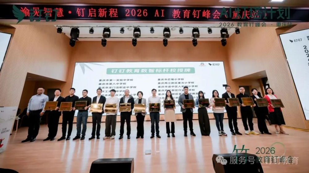 峰会尾声,钉钉教育总经理曹剑向16所重庆学校授予了“钉钉教育灯塔标杆校”称号,涵盖小中学、职业院校,彰显了重庆教育数字化的多元实践。